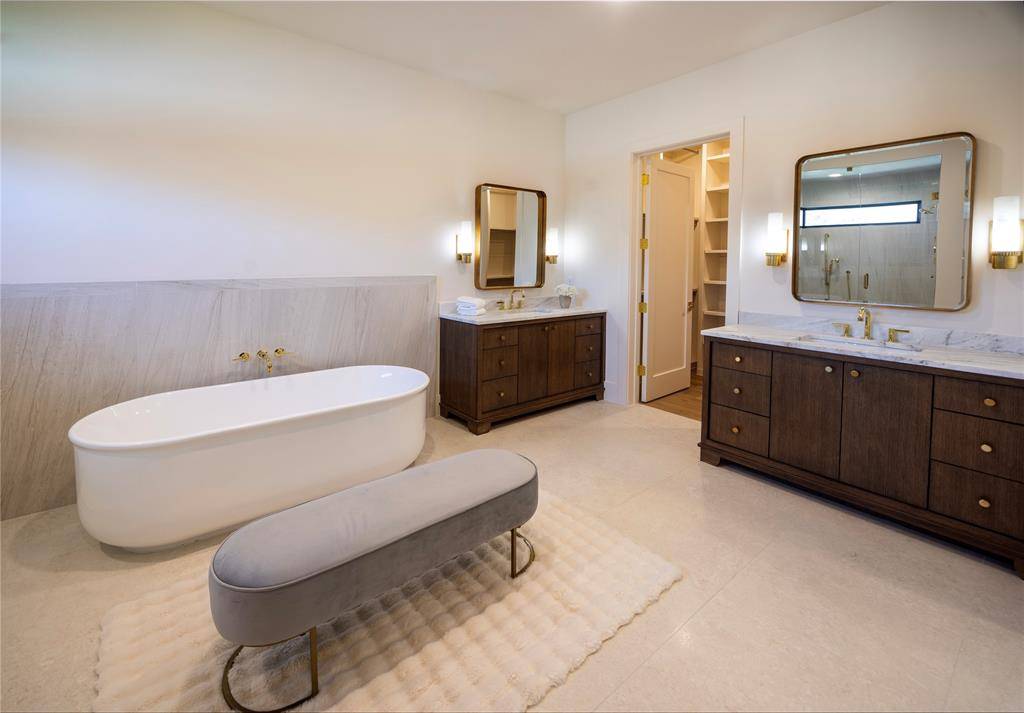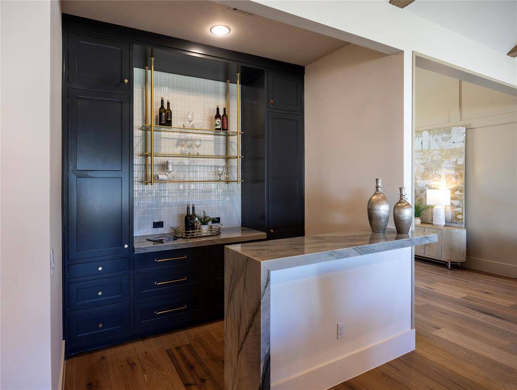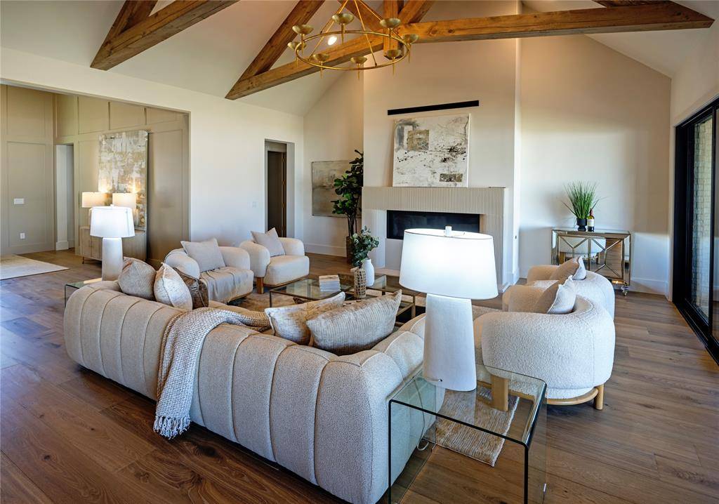 Newly completed luxury home by award winning builder Atwood Custom Homes located in the prestigious Eastpointe Terrace community in Colleyville. Situated on a desirable 0.46 acre lot, this stunning single story transitional home offers 4 bedrooms including 3 guest bedrooms and 1 spacious primary suite, 4.5 bathrooms, a private office, and a versatile flex room. Designed with both elegance and functionality in mind, the open concept floor plan is filled with natural light from expansive windows and sliding glass doors that create seamless indoor outdoor living. The living area features vaulted ceilings with exposed beams, creating a striking architectural focal point. The chef's kitchen is designed for entertaining and everyday living with a large island, luxury appliances, soft close custom cabinetry, wet bar, and a fully equipped prep kitchen with walk in pantry. The primary suite offers a private retreat with a spacious layout and luxurious bath, while three additional guest bedrooms include walkin closets and ensuite access, providing comfort and privacy for family or visitors. Outdoor living is exceptional, featuring an extended covered patio with outdoor kitchen and entertaining area, perfect for year round gatherings. Energy efficiency and long term comfort are built in with full foam encapsulation and high efficiency HVAC systems.