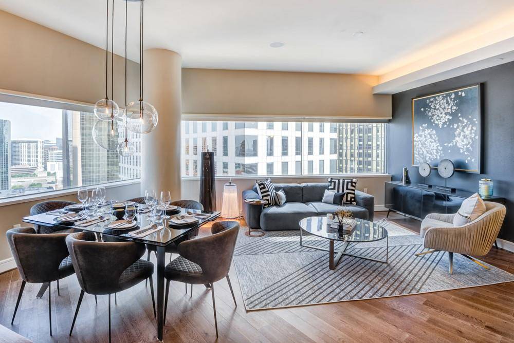 Welcome to One Dallas Center, a luxury residential community featuring elegant and sophisticated apartment living in Downtown Dallas. This spacious Dallas high-rise apartment grants you access to fantastic amenities, including a contemporary kitchens outfitted with granite countertops and a living room decorated with accent walls and hardwood floors. An impressive collection of luxury amenities include a 30th floor Club Room and Sky Lounge, resort style pool area with private cabanas, 5,000 square foot fitness center featuring Technogym, a spin theatre, covered parking and bike racks. All of these amenities provide an opulent lifestyle of urban living in Downtown Dallas. In town, enjoy being adjacent to the city's greatest entertainment attractions and venues including American Airlines Center, Dallas World Aquarium and convenient access to Highway 75 and I-35.