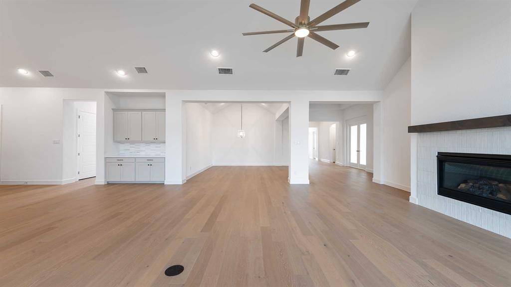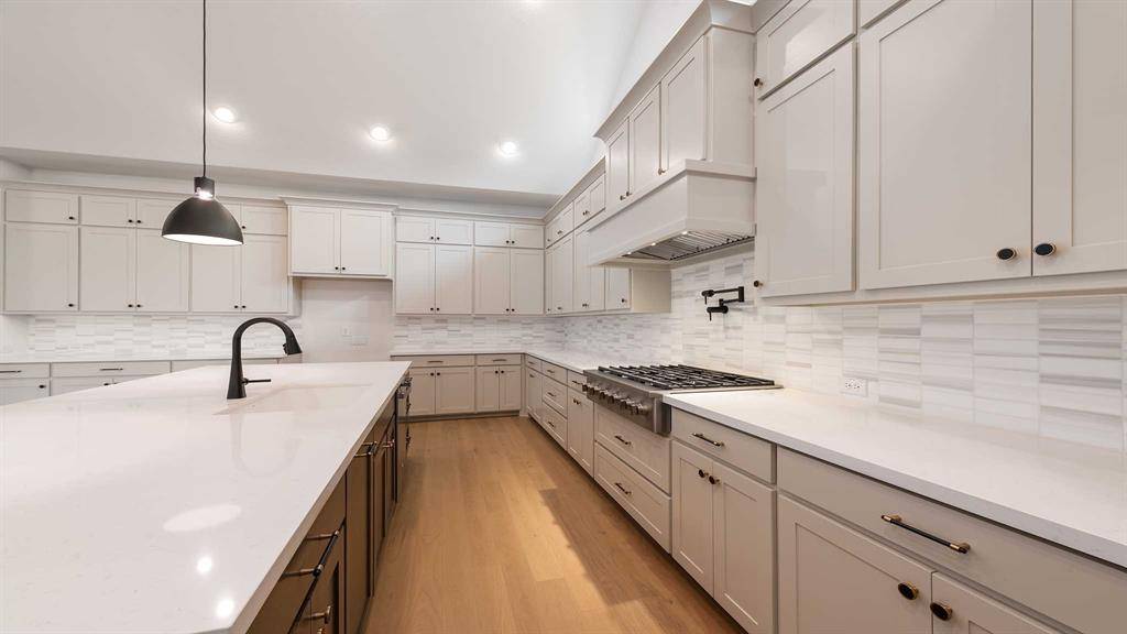 READY FOR MOVE-IN! Welcoming entry features 14-ceilings and a home office with French doors set at entry. Extended entry flows past the game room with French door entry and three large windows. Formal dining room just off the extended entry. Grand family room with 16-foot ceiling, a wood mantel fireplace and a sliding glass door. Kitchen hosts an island, large walk-in pantry, generous counter space, double wall oven, 6-burner gas range top and a butler's pantry. Morning area just off the kitchen. Secluded primary suite offers a wall of windows. Primary bathroom features a French door entry, dual vanities, freestanding tub, separate glass enclosed shower, a linen closet and two-walk-in closets. Large guest suite just off the kitchen area offers a private full bathroom and a walk-in closet. Additional bedrooms with bathrooms and walk-in closets. Extended covered backyard patio. Utility room just off the mud room. Three-car split garage.