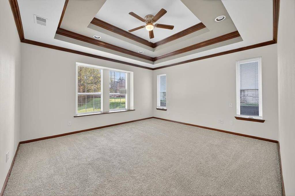 Updated 4BD 2BA home with 2,184sq ft on a huge 13,591 sq ft lot! Fresh paint, recent carpet and flooring throughout. Tray ceilings in the primary bedroom and living area, a kitchen with granite countertops, custom cabinets, and a great bar area! Conveniently located near shopping, dining, and major roads, it offers comfort, style, and convenience. Move in ready!