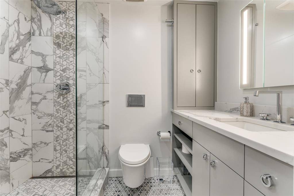 Completely reimagined from the concrete up, this home features a stunning gourmet kitchen with custom cabinetry, integrated coffee center, designer hardware, quartz countertops and backsplash, under-cabinet lighting, island with microwave drawer, and beverage–wine refrigeration. The Italian ILVE 40 inch induction range elevates the culinary experience with a six-zone cooktop. 2 garage parking spaces and a storage area. LaTour amenities - 24 hr concierge-valet, dog park, tennis, pickleball, pools with cabana, community room with kitchen.