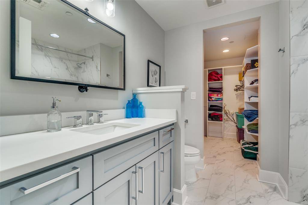 Privacy is paramount, as each generously sized bedroom includes its own dedicated, full en-suite bathroom and a spacious, custom-organized walk-in closet. The primary suite offers the added luxury of a private fireplace and a breathtaking, spa-inspired en-suite finished with floor-to-ceiling Carrara marble-look tile and an oversized, frameless glass walk-in shower. Further simplifying your day-to-day, a full-size, dedicated utility room is included.