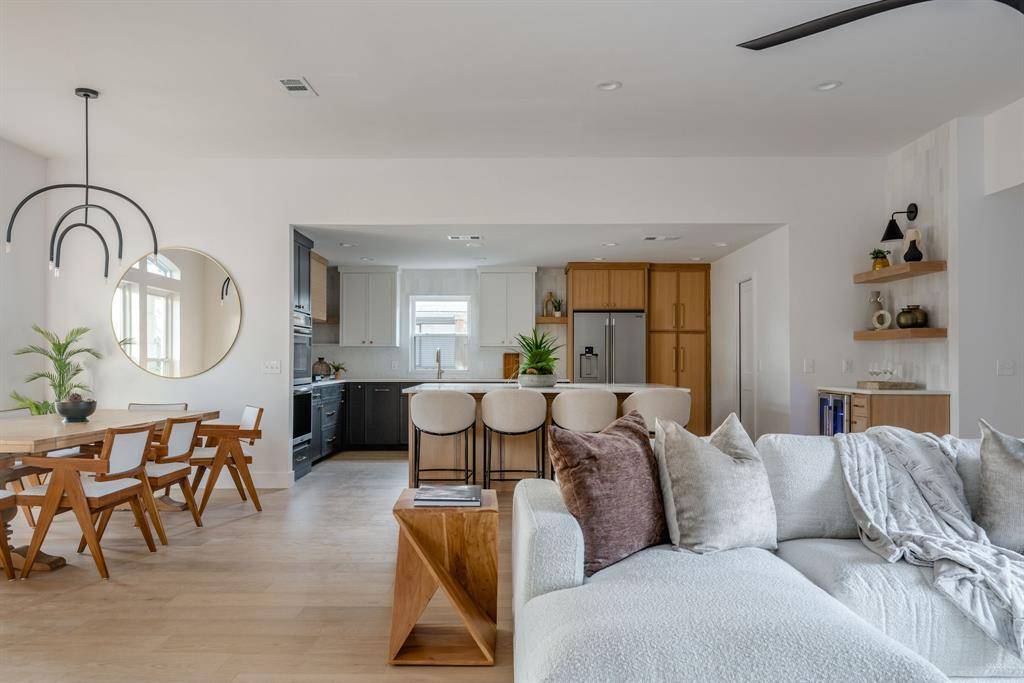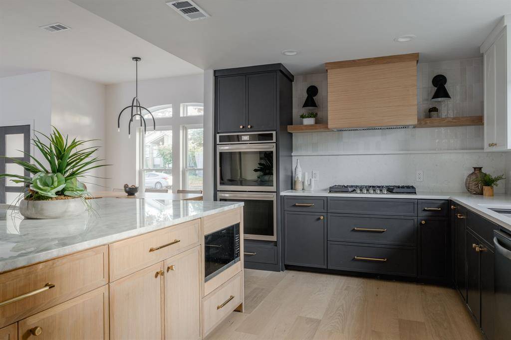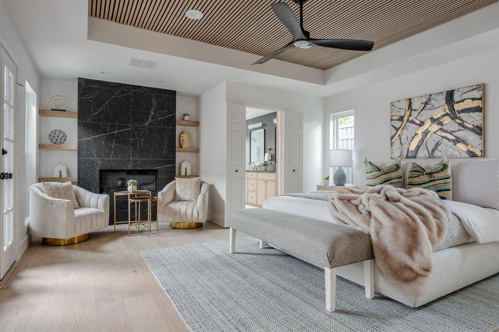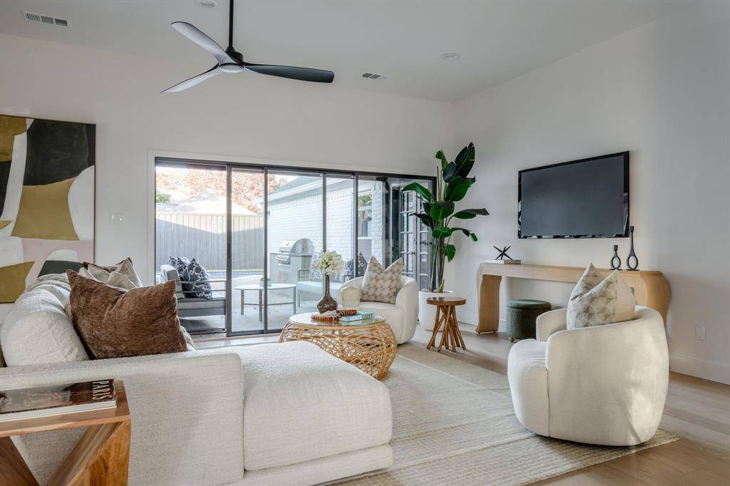 Step into right-sized luxury with this organic modern remodel in the Preston Highlands neighborhood, brought to you by The COBO Group. Every aspect of 6423 Wrenwood was thoughtfully re-envisioned with both design and function in mind, down to the structural systems of the home. The meticulously transformed open concept kitchen, living, and dining room invite you to live and entertain with ease. Triple-panel aluminum patio sliders open fully to blend the interior and exterior into one expansive living space. Custom rift-sewn white oak and designer painted cabinetry are one of many high-end products selected with intention. From wide plank european white-oak flooring, marble and quartz countertops, Frigidaire Gallery & Professional appliances, Custom Vent a Hood, Visual comfort lighting, just to name a few. The Primary suite offers a secluded retreat with a linear gas fireplace, spa-inspired en-suite with 3-function wet-room, and spacious master closet, complemented by natural light from the skylights. The 3 guest bedrooms provide the perfect layout for families while maintaining enough privacy to create an office or parental suite. The outdoor patio with built-in Blaze grill, pristine pool with triple filtration system, and pet-friendly turf allows for a low-maintenance oasis.
