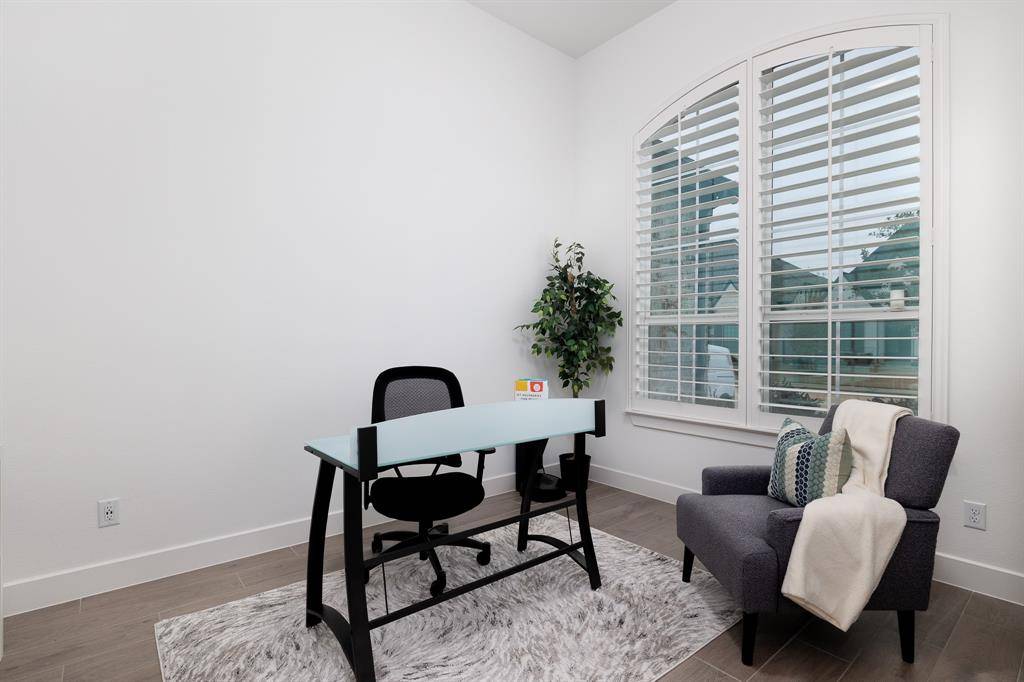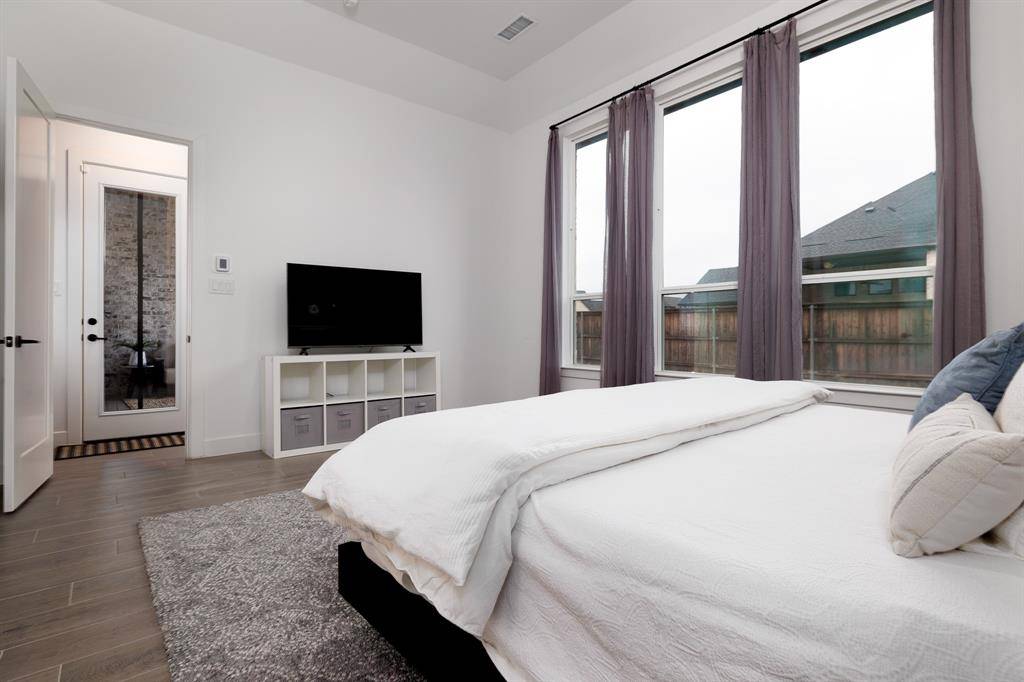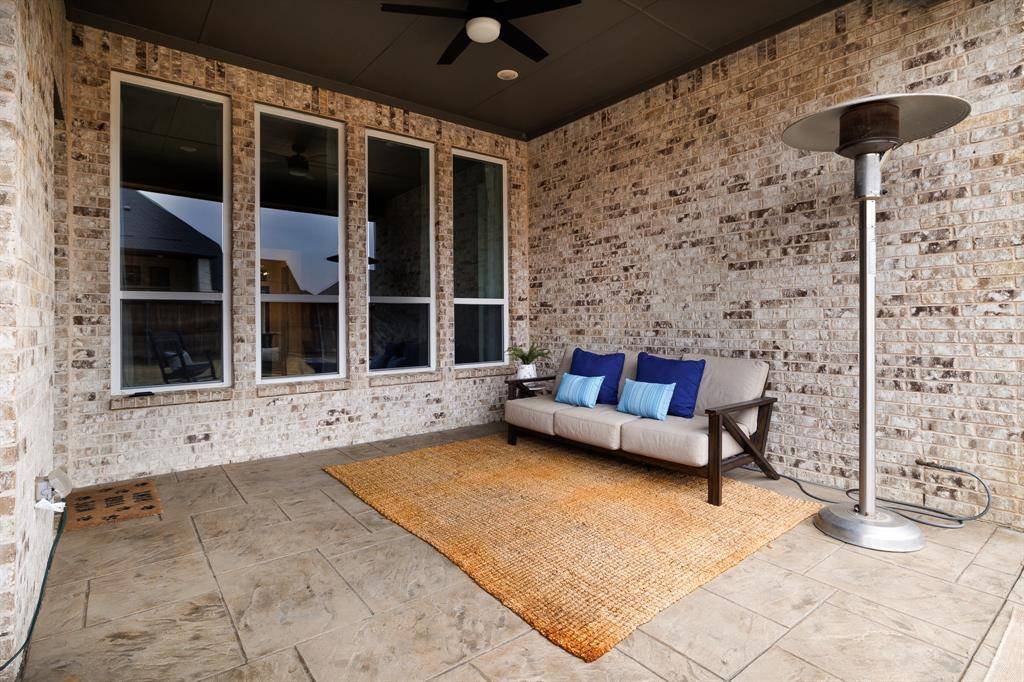 Beautifully designed in the sought after community of Lakewood, this sophisticated one story sits on a corner lot. Blending elegance, comfort and lifestyle with a Great Room that features an open concept uniting the kitchen, dining area, living room and half bath through architectural details. The kitchen features a gas cooktop, double ovens, quartz countertops, tile backsplash with an island that seats four and offers a farm sink, dishwasher and garbage disposal. Natural light shines through the four windows in the living room with vaulted ceilings, fireplace and recessed lighting. The two primary suits strategically placed on opposite sides of the home offer a serene retreat with a spa inspired ensuite bath and generous walk in closet. The third bedroom is at the front of the home and is currently being used as an exercise space also has an ensuite. This home is complete with a study and media room. The outdoor living space has an extended patio with stamped concrete and mounted television. Location is key in North Texas and this home is close to 380, the Dallas North Tollway, and 75 with schools, shopping and restaurants close by.