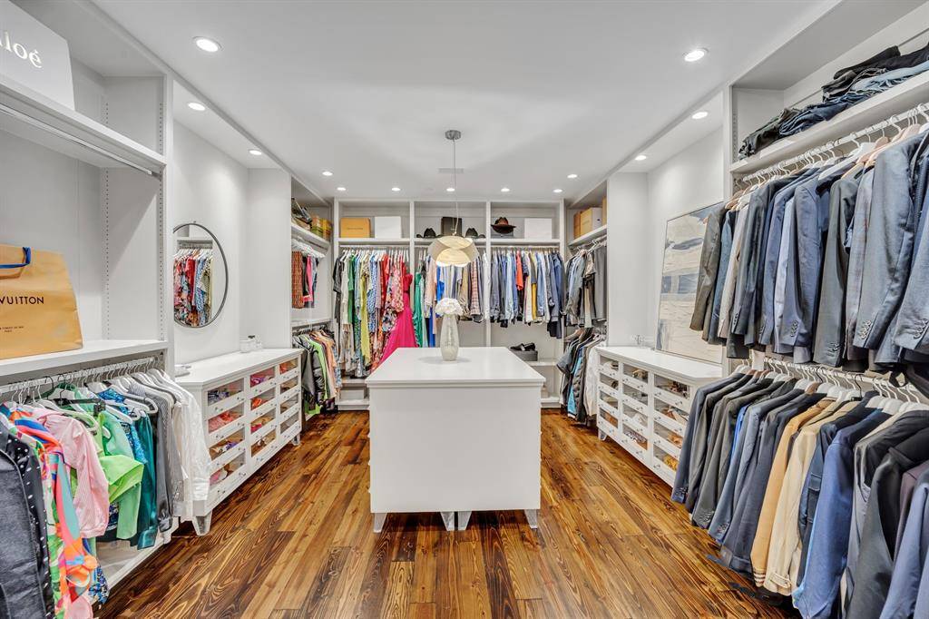 The backyard is a world-class retreat featuring a custom-designed pool, lush professional landscaping, and a 20-foot side yard. The highlight is the sophisticated sunken conversation pit, offering a fireside experience ideal for indoor-outdoor entertaining. Above the garage, a fully finished guest suite provides a private haven with a walk-in closet and full bathroom, ideal for a high-end home office or multi-generational living.