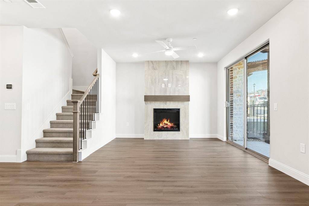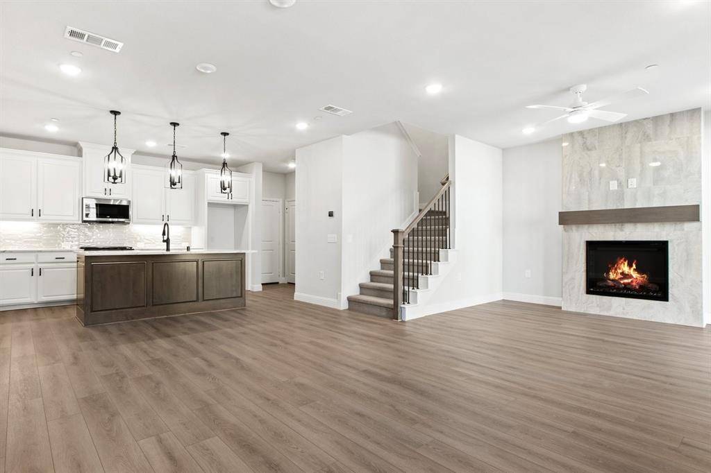 MLS# 21151198 - Built by Grenadier Investments - Ready Now! ~ Spacious contemporary interior-unit townhouse in Chelsea Green at The Tribute, built in 2026, featuring the largest floor plan in the community. Overlooking a beautifully landscaped green space, this home offers three primary bedrooms and three bathrooms (2 full, 1 half) with an open-concept layout, gas fireplace, high ceilings, and decorative lighting. Enjoy a privacy-fenced front patio, landscaped lawns, and a two-car garage. Located in the highly regarded Little Elm ISD. Move-in ready.