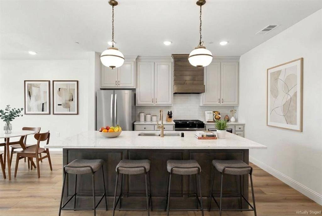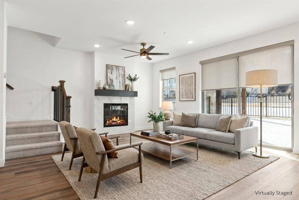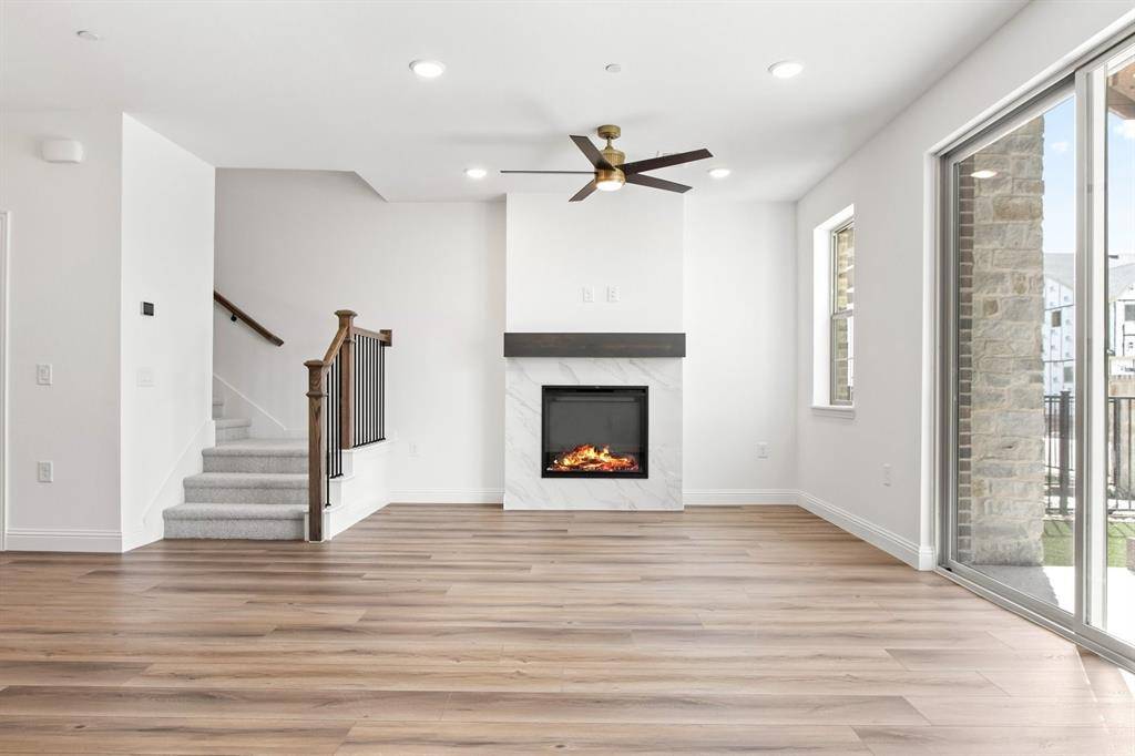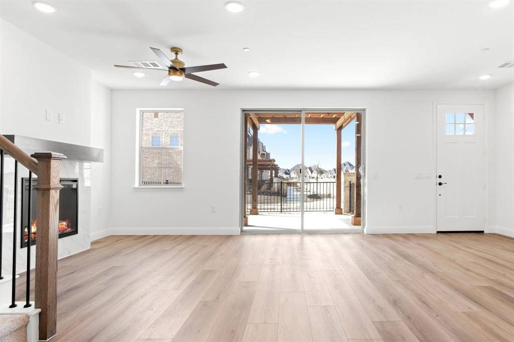 MLS# 21151228- Built by Grenadier Investments - Ready Now! ~ Contemporary interior-unit townhouse in Chelsea Green at The Tribute, built in 2026. Features three primary bedrooms and three bathrooms (2 full, 1 half) with an open-concept layout, gas fireplace, high ceilings, and decorative lighting. The primary bedroom overlooks the park, offering a peaceful view. Includes a privacy-fenced front patio ideal for entertaining, landscaped lawns, and a two-car garage. Located in highly regarded Little Elm ISD. Move-in ready.