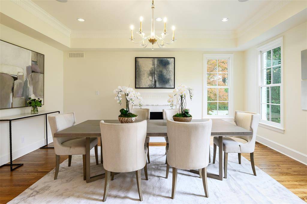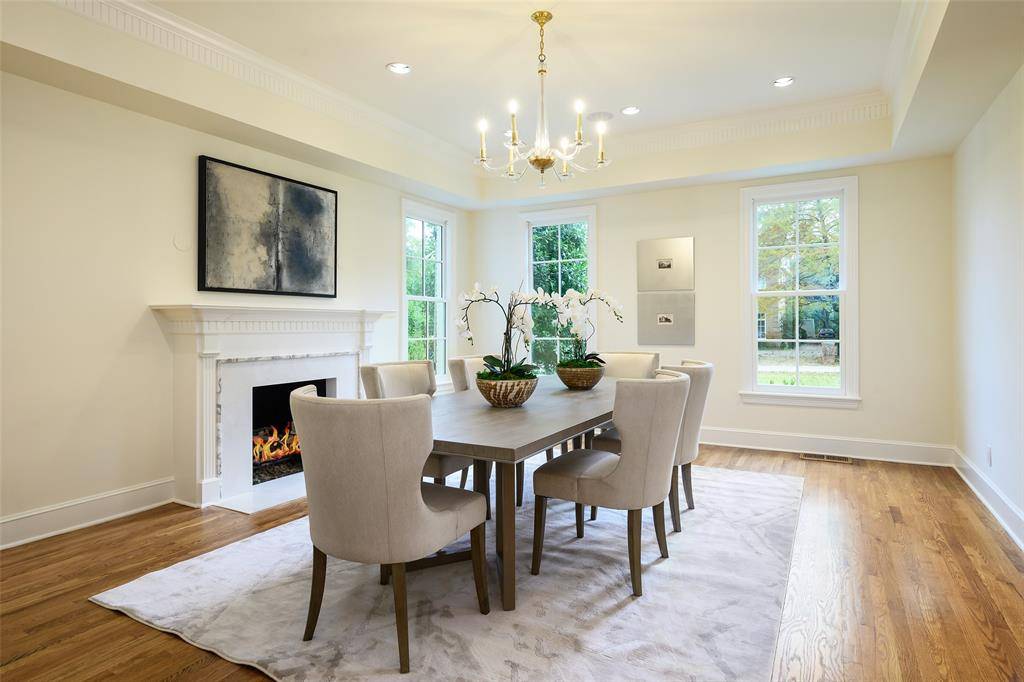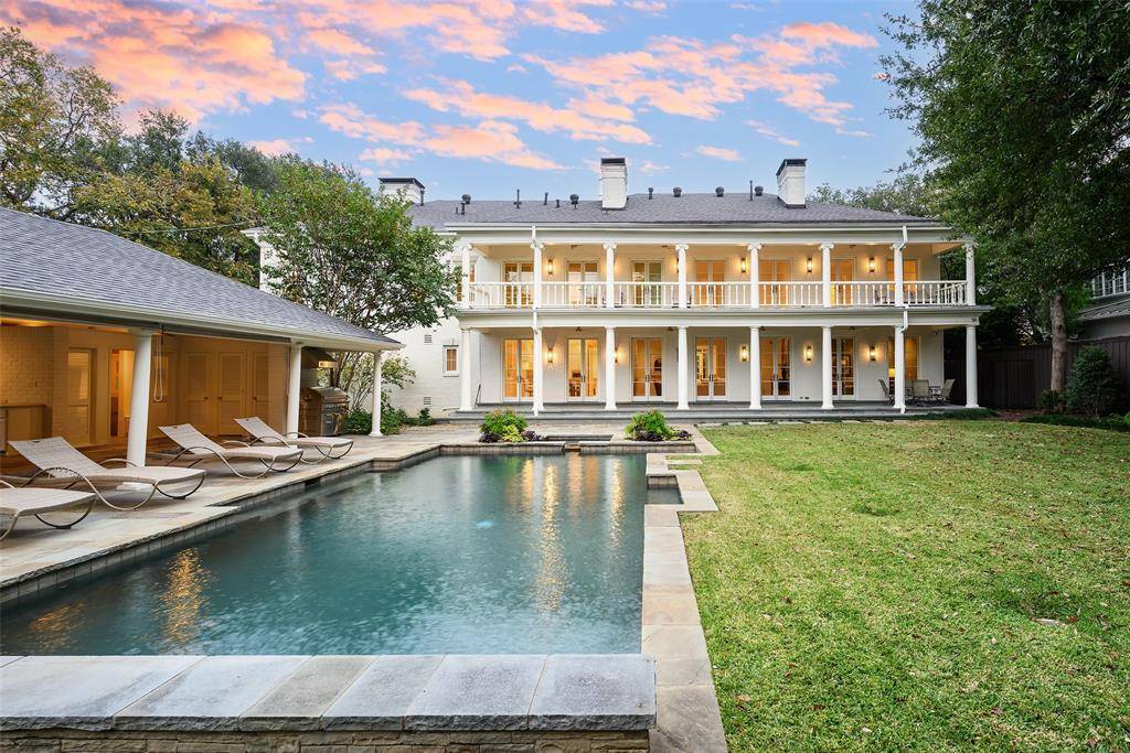 This classic Georgian colonial-style residence was originally built in 1984 and totally remodeled in 2025, leaving no surface untouched. Beautiful architectural features include 11-foot ceilings, expansive back loggias upstairs and downstairs, French doors that open to the back yard from most rooms, and a stunning spiral staircase. Recent improvements include refinished hardwood floors throughout, freshly painted interior and exterior, gorgeous designer wallpaper, updated light fixtures in every room, and beautiful new fireplace mantles. The gracious foyer is flanked by a formal living room and dining room, with mirroring fireplaces. The paneled den just off the living and family rooms includes a wet bar, wine cooler, and dual ice makers. In the spacious family room, walls of French doors frame the stunning backyard oasis. The dining room and family room flow into a gourmet kitchen, offering quartzite counters and backsplash, a large center island, refrigerator and freezer, top-of-the-line stainless steel appliances, double sinks, a walk-in pantry, and butler's pantry. A 3-car garage with epoxy flooring is directly adjacent to the kitchen, providing convenient access. On the second floor, the primary suite boasts treetop views from a covered terrace, a marble bath with dual vanities, soaking tub, separate shower, and an expansive custom closet. There are also four additional bedrooms, a dedicated office, and porch access from every bedroom. The third floor provides a large, climate-controlled attic for storage or potential flex-space. The stunning backyard boasts mature oaks and crepe myrtles that frame the sparkling pool and raised spa. The large cabana is an entertainer's dream, including a living area, built-in grill, kitchenette, wood-burning fireplace, and full bath. A putting green is located just behind the cabana for added entertainment. This is the perfect home for easy entertaining and family living!