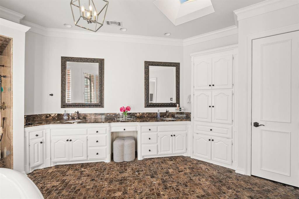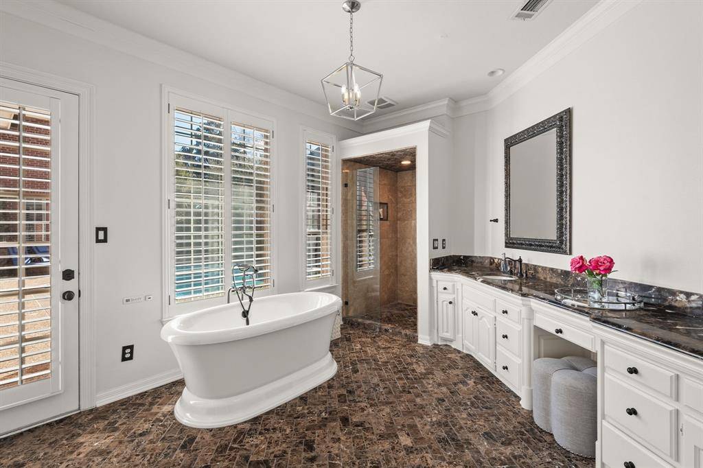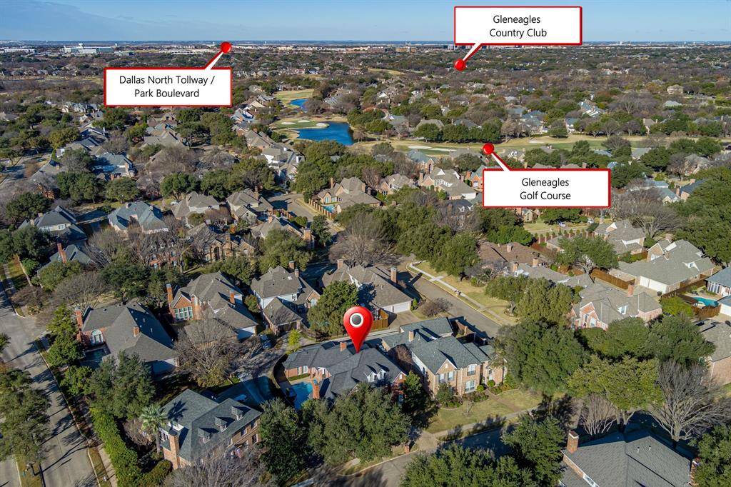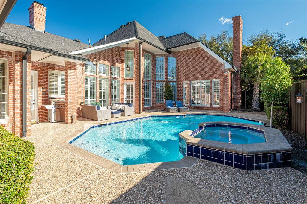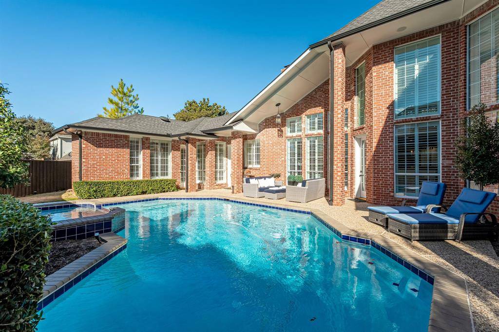 Nestled just south of Gleneagles Country Club in the highly desirable Fairways of Gleneagles community, this beautifully updated four-bedroom, three-and-a-half-bath residence delivers style, comfort, and an exceptional layout. Recent improvements include crisp new interior paint, elegant carpet on the stairs and second level, and rich wood flooring that spans the entire first floor. Plantation shutters add timeless elegance throughout the home. The formal living room welcomes you with a soaring vaulted ceiling, a striking marble-trimmed gas log fireplace, and custom built-ins that create a warm, sophisticated setting. The spacious kitchen is designed for both everyday living and entertaining, featuring granite countertops, a Viking oven and dishwasher, a six-burner gas cooktop, and a built-in GE Monogram refrigerator. The adjoining family room impresses with its dramatic floor-to-ceiling brick gas fireplace, a walk-in wet bar, and clear views of the backyard oasis. The downstairs owners retreat provides a private escape with direct access to the pool, and a spa-inspired bathroom showcasing herringbone marble floors, a jetted tub, dual sinks, a large separate shower, and an expansive walk-in closet. A secondary bedroom on the main level offers a full ensuite bath—ideal for guests, multigenerational living, or a nursery. Upstairs, you will find two additional bedrooms along with a generous game room offering flexible space for play, work, or relaxation. Step outside to your personal paradise: a diving pool and spa, a covered patio for shaded lounging, an additional seating area, and a small grassy space for pets or play. The pool has been recently resurfaced with new tile, a new heater, brand new pool sweep, and features modern automation accessible through an app. This exceptional home has been thoughtfully designed to elevate daily living, creating a home that feels like a retreat every single day.