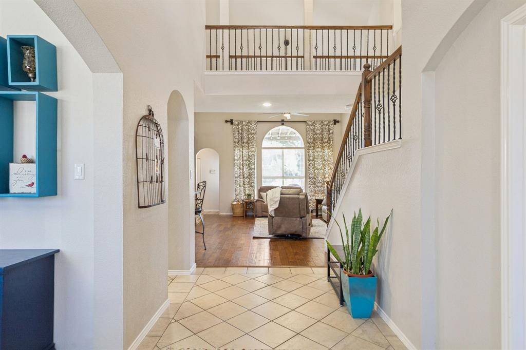 OPEN HOUSE! SATURDAY, FEB 28 FROM 12 TO 2PM! THIS IS THE DREAM HOUSE YOU HAVE BEEN WAITING FOR! Gorgeous 5 bedroom (two down), 3 car garage home with dreamy backyard oasis in Allen ISD! It's hard to believe but summer will be here before you know it. Be ready to beat the heat with this .31 acre amazing resort style backyard with pool and spa! The backyard paradise offers a covered patio and an additional outdoor living area under a charming pergola as well as lush greenery and flowers. Step inside, the entry is flanked by a study with french doors and the dining room. The dining room with graceful arched openings is just off the kitchen, perfect for entertaining. The family room with hardwood flooring has a soaring ceiling adding to the open spacious feel of the room. Anchored by a brick fireplace with gaslogs and handsome built ins, the living room enjoys views of the backyard and is open to the kitchen-great for entertaining. The spacious updated kitchen offers stunning leathered granite countertops, island with butcher block top, painted 42 inch cabinets, gas range and more. The primary suite and another bedroom are found on the first floor, 3 additional bedrooms and large second living space are up. The spacious primary offers views of the backyard as well as a spalike en suite bath and nice size walk in closet. Upstairs find an L shaped living area with bonus space that allows for a sitting or reading area as well as a game room. The secondary bedrooms on the second floor are a nice size. Two share a jack and jill en suite bath. The third bedroom benefits from a full bath in the hallway. New carpet! Second floor HVAC unit new in 2025. The home is situated on an oversized lot providing space for the pool, outdoor living and grassy space for pets or children to run and play. Convenient to all the Allen has to offer. Walk to the elementary school. Find easy access to shops and dining. Don't miss this amazing opportunity!