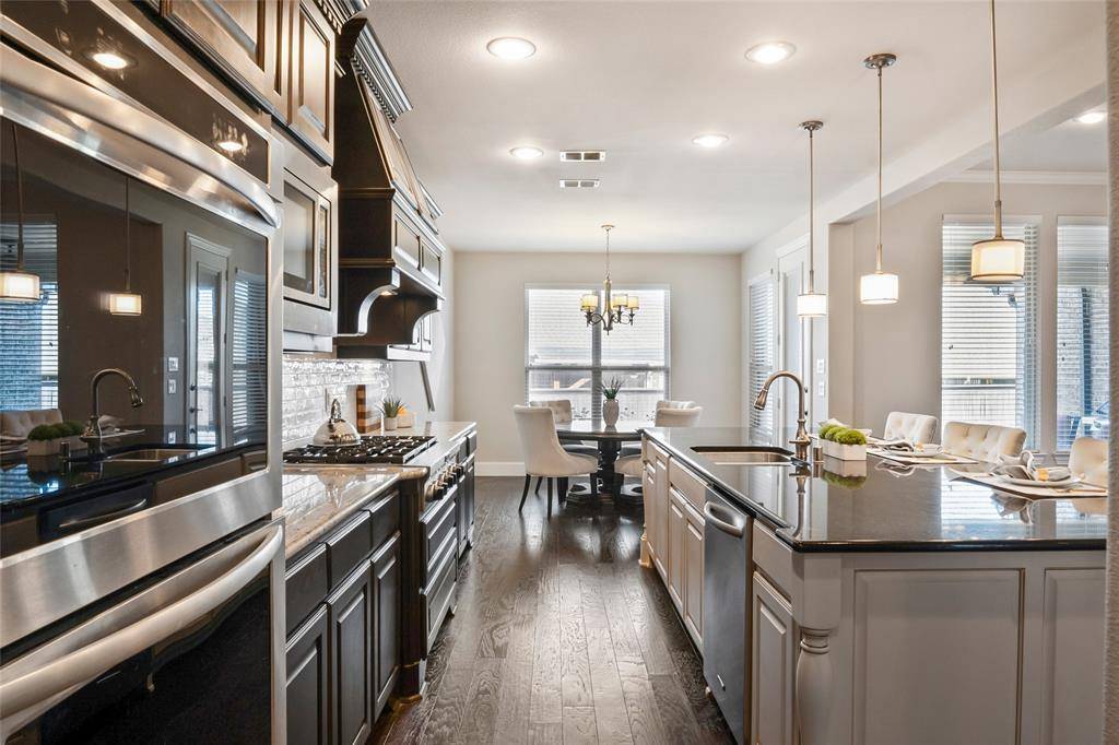 gas cooktop, butler's pantry, and upgraded finishes. The kitchen flows seamlessly into the open living room with a wall
