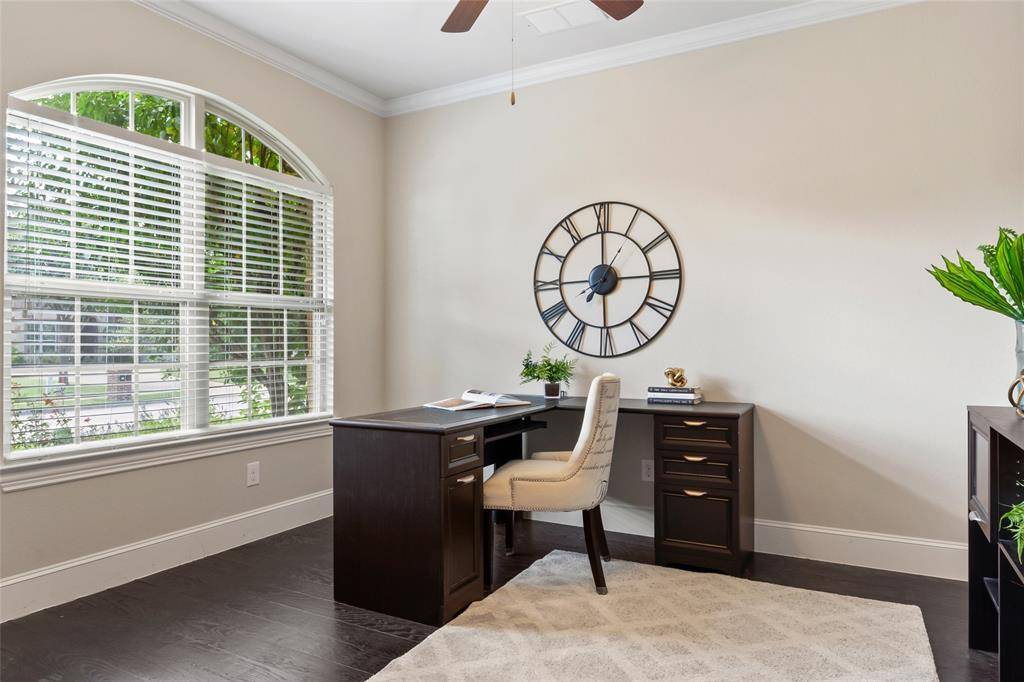 and elegant details are showcased throughout, along with a private office with French doors, a formal dining room, and
