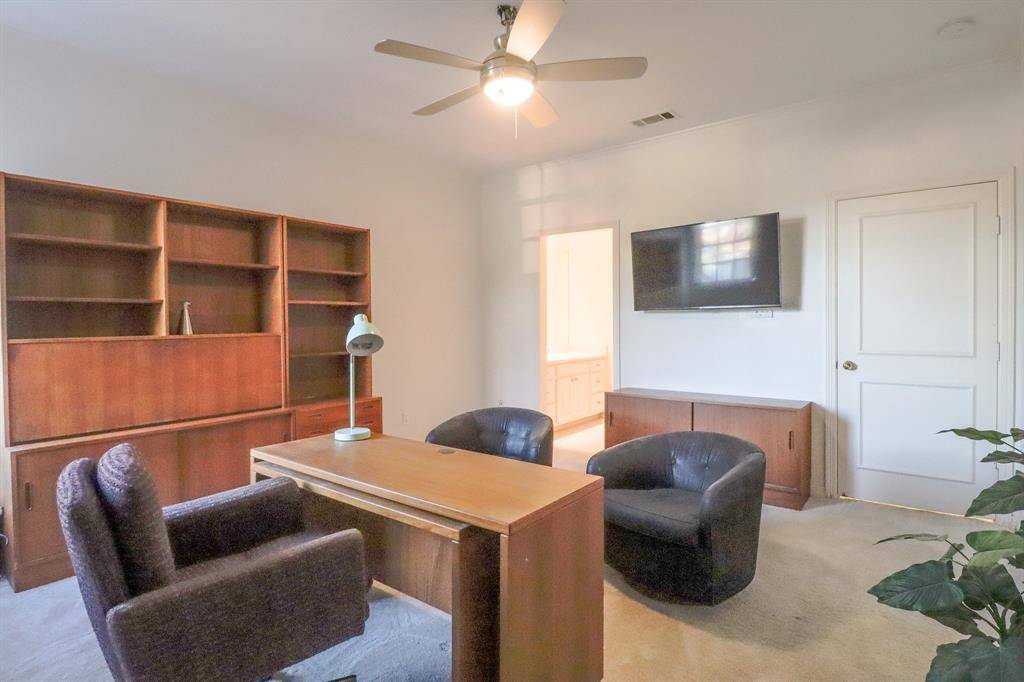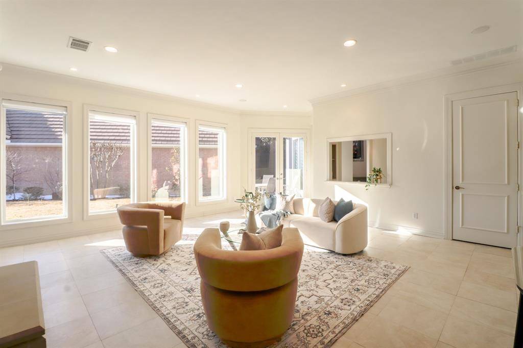 Reimagined with a fresh, modern color palette, this exceptional home in the Preston Trails area offers the space, flexibility, and refined finishes today's discerning buyer demands. Ideally positioned at the end of a quiet cul-de-sac within an exclusive gated community, the property combines privacy with elegant, functional living. The light-filled floor plan features large portrait windows and newly refinished smooth walls—intentionally designed to showcase significant art. Multiple flexible-use spaces allow for home offices, guest accommodations, or creative studios, making the layout as practical as it is beautiful. The recently updated kitchen is outfitted with quartz countertops and high-end stainless steel appliances and opens seamlessly to the family room—perfect for entertaining or relaxed everyday living. A gracious center-hall entry anchors the home, flanked by spacious formal living and dining areas that create a striking first impression. The expansive primary suite serves as a private retreat, complete with a generous walk-in closet and spa-inspired bath featuring a jetted tub, walk-in shower, and dual vanities. Secondary bedrooms each include walk-in closets, while abundant storage throughout the home includes a bonus room with its own window and closet—ideal for a home office, hobby room, or climate-controlled storage. Outdoor living is equally inviting, with a covered patio and built-in gas grill overlooking a private side yard—an ideal setting for gatherings or quiet evenings at home. Conveniently located near premier North Dallas shopping, dining, and medical centers, with easy access to the Dallas North Tollway and President George Bush Turnpike, this residence delivers refined living in one of North Dallas's most desirable neighborhoods.