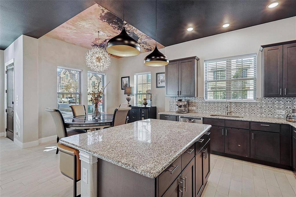 Thoughtfully curated with over $73,600 in builder upgrades and $108,000 in owner enhancements, the home is designed for both beauty and functionality. As an end unit, it enjoys enhanced privacy and abundant natural light throughout. Designed for both everyday living and entertaining, the home features multiple outdoor living areas, including a covered rooftop patio with built-in swing, a second-floor patio, a first-floor patio, and a rare private fenced yard—a standout combination seldom found in townhome living. The open-concept kitchen anchors the main living space with gas cooking, an oversized breakfast bar, custom tile and lighting, pull-out pot and pan storage, an upgraded microwave, and generous prep space—perfect for hosting or relaxed daily use. The second floor includes the primary bedroom, a secondary bedroom, a private gym, laundry, and a flexible office or lounge space that opens to a private balcony, creating a peaceful indoor-outdoor flow. The third-floor retreat features a full bathroom, versatile living or studio space, and direct access to the rooftop patio, making it ideal as a guest suite, creative studio, or private getaway. Additional highlights include designer lighting, upgraded tile work, custom paint, a finished garage with extra storage, smart-home features, and low-maintenance living throughout.