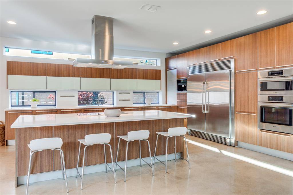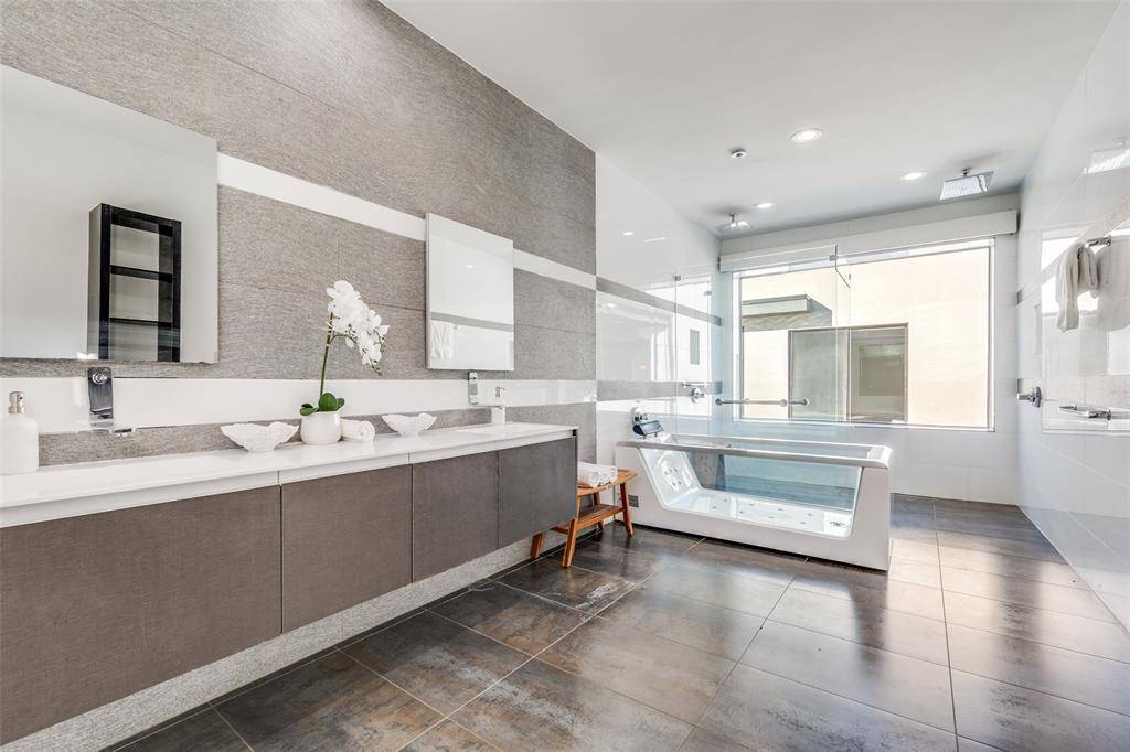 Meticulously designed for Modern elegance, green living and efficient use of space. This amazing one story, custom built masterpiece is Dallas living at its best. A Porcelanosa custom kitchen with touch sensitive electric opening cabinets, Bosch Induction cooktop, Miele built in coffee maker, side by side SS refrigerator freezer all open to the living, dining areas. A wall of sliding doors showcase the patio with phantom screens overlooking the saltwater pool and oversized lot. Museum level walls for the quiet retreat. This is an ICF house with walls that are 6 inches of concrete with 2 inches of foam on the inside and outside. The primary bedroom has a resort type feel with radiant barrier flooring in the bathroom, an oversized custom closet, Jacuzzi see through tub with ceiling mount & a huge open walk-in shower. Other features: oversized garage, Epoxy floor, workshop in garage with shelving, sink & under HVAC; Tesla Powerwall, Tesla fast charger & 2 standard electric vehicle outlets, water softener and exterior drains. Come tour this beautiful home. Close to ESD & other private schools, shopping & dining!