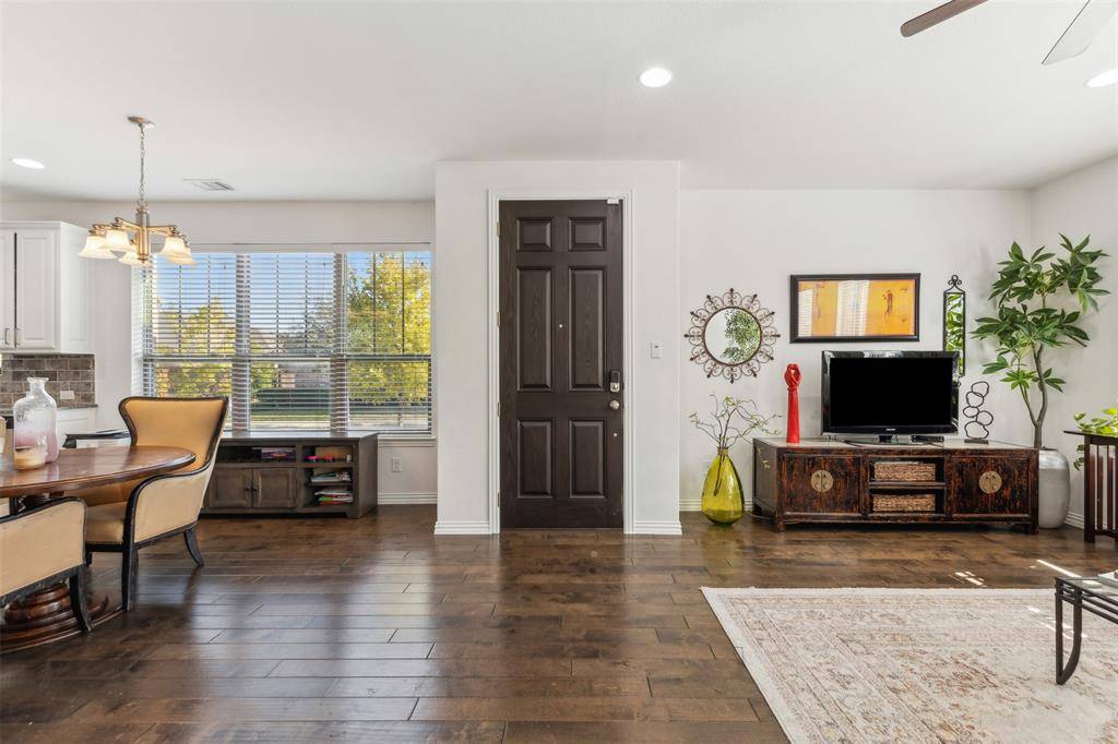 Beautiful Craftsman style townhouse that is meticulously maintained and located in the award winning master planned community of Viridian. The two story home is a sought after end unit and situated on a corner lot with a large front covered porch. The first floor features an open concept floor plan with an abundance of windows and natural light, a large family room with wood floors, dining and a kitchen that offers granite, island, stainless steel appliances, gas range and ample cabinets. Upstairs offers a second living area-game room with built-in cabinets and separates the secondary bedrooms from the master. The spacious master offers double vanities, a large walk-in shower and a huge walk-in closet. Rear entry garage. The community has an abundance of resort style amenities from swimming pools, walking trails, private dock, sailing center, clubhouse, dog park, tennis and pickleball courts, and community events. Perfect location..centrally located in DFW, easy access to hwys, shopping, and just minutes to Globe Life Field, AT&T Stadium, and DFW Airport.