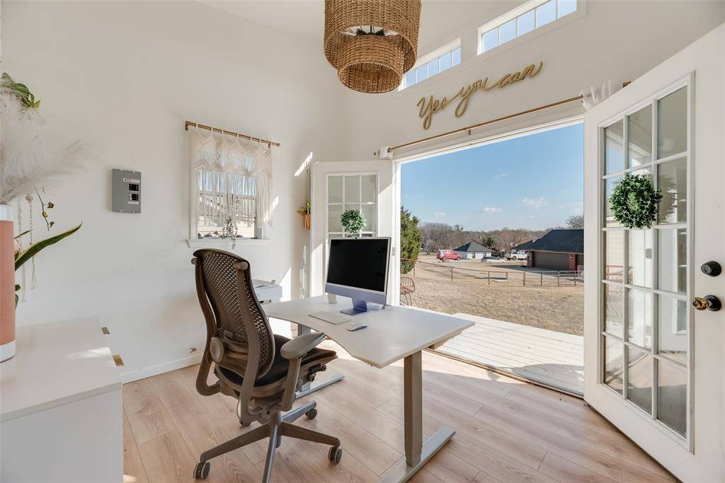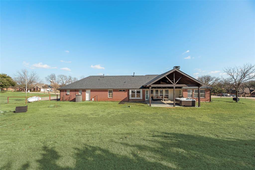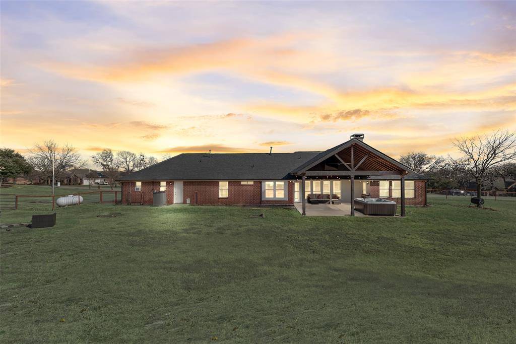 Discover the perfect blend of comfort and versatility in this delightful custom-built home, on a one-acre lot in Celina! Step inside to experience an inviting atmosphere beginning with a private study offering a peaceful environment for a home office. The oversized split primary suite has a luxuriously updated ensuite bathroom. Central to the home is the kitchen that features custom cabinets and ample storage, perfect for cooks. The open-flow design ensures seamless connection to the dining and living area. This unique one-acre property includes a 3-car garage with full ac and heat, a sink and built-ins. Outside, a detached casita, complete with electricity, is perfect for a home office, art studio, fitness gym, or any creative venture you envision! The extended patio, shaded by a roof, provides a charming venue for gatherings and solitary relaxation, completed by the inclusion of a hot tub for year-round enjoyment! Savor the joys of harvesting your own produce from the raised garden bed, perfect for growing vegetables and herbs. The yard is beautifully enclosed with pipe fencing, offering a secure and serene outdoor space! Schedule a showing today to see this Celina gem located in the Preston Hills subdivision with no HOA.