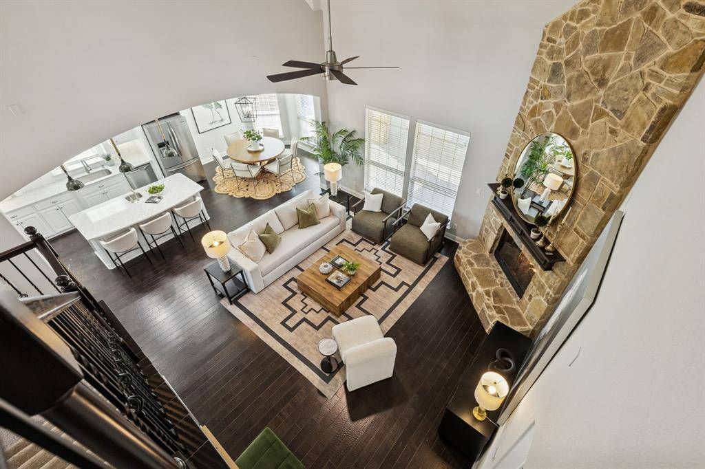 Move In Ready! Luxury living in this updated 5 bedroom, 4 full bath home. Excellent floor plan with hand-scraped hardwood floors on the main level. Create memories with friends & family in the heart of the home, an expansive living room with a stone fireplace, vaulted ceilings, abundant natural light, and views of the backyard. Kitchen is a chef's dream offering granite countertops, stainless steel appliances, double ovens, gas cooktop, and butler's pantry seamlessly connecting to the living area. Grand entry leads to formal dining and dedicated office. Large master suite with grand master bath offering dual sinks, garden new free standing tub, standalone shower, and walk in closet. Secondary bedroom conveniently located on the main floor. Oak staircase with wrought iron balusters. Upstairs game room is surrounded by 3 bedrooms and 2 full bathrooms easy to customize to your lifestyle. NEW CARPET UPSTAIRS. Ultimate outdoor entertainment with private backyard oasis featuring a large covered back porch, turf putting green, sparkling SALT WATER pool with water features, soothing hot tub spa, and relaxing cabana with outdoor bathroom perfect for year round entertaining. 3 Car Garage. Community-sponsored events for all ages. Resort-style amenities just a short walk from home. Delight in easy access to highways. Great location puts your family just minutes away from Trophy Club Country Club, Charles Schwab complex, DFW airport, major shopping, dining, & entertainment destinations. Trophy Club is more than a place to live—it's a lifestyle. Seize the chance to make this property your dream home.