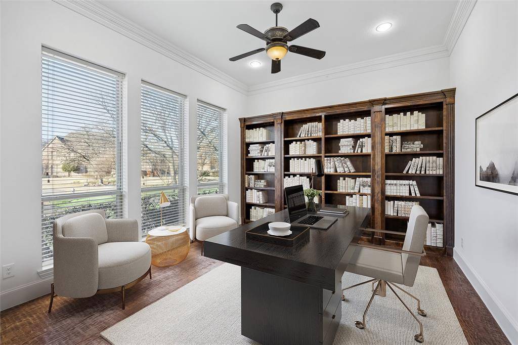 Set behind a gated drive at the end of a quiet cul-de-sac, this remarkable Bridlewood Farms estate offers a rare blend of privacy, craftsmanship, & resort-style living. With 4 pages of custom upgrades (attached), this special home has all the extras & more! At the heart of the home, a chef's kitchen anchors everyday living & entertaining w-custom cabinetry, premium appliances, an expansive island + thoughtfully designed prep & storage spaces for seamless hosting. Sunlight fills the adjoining breakfast area, while a secondary staircase provides effortless connection between the main living areas & the upper level. Just off the kitchen, a dedicated craft room adds a functional & creative space for hobbies. Formal & casual spaces are equally impressive, including a stately dining room with butler's pantry & wine fridge, a large inviting family room w-fireplace, a private study + flex space. A full guest bedroom w-en-suite bath is conveniently located on the 1st floor, alongside a large adjacent bonus room w-walk in closet that can easily be a 2nd primary suite. Upstairs, the primary suite is privately positioned creating a true sanctuary complete with a spa-inspired bath, boutique-style closet, cedar wardrobe + an adjoining fitness room. The 2nd floor also includes two large en-suite bedrooms, a massive game room + media w-kitchenette, along w-abundant storage throughout, including a huge climate-controlled bonus storage room. Step outside to your own true backyard resort w-a custom cabana w-outdoor kitchen, custom Claffey designed lap pool w-electric retractable cover, heating & chilling features, complemented by a cozy fireplace, a full cabana bath, a putting green + a charming playhouse. Lush landscaping & mature trees create a tranquil, private atmosphere ideal for both relaxation & entertaining. Other features include an oversized 3-car garage w-epoxy plus cabana garage w-storage, workbench & sink, whole-home surge protection and monitored security system.