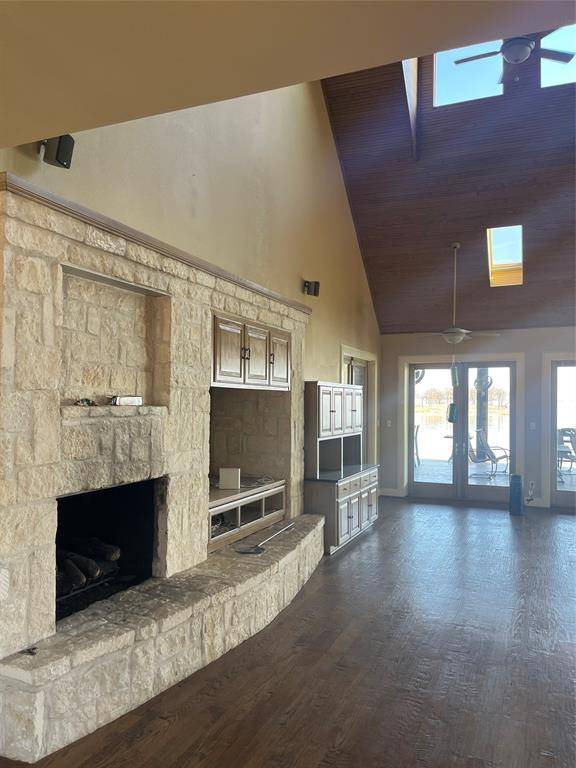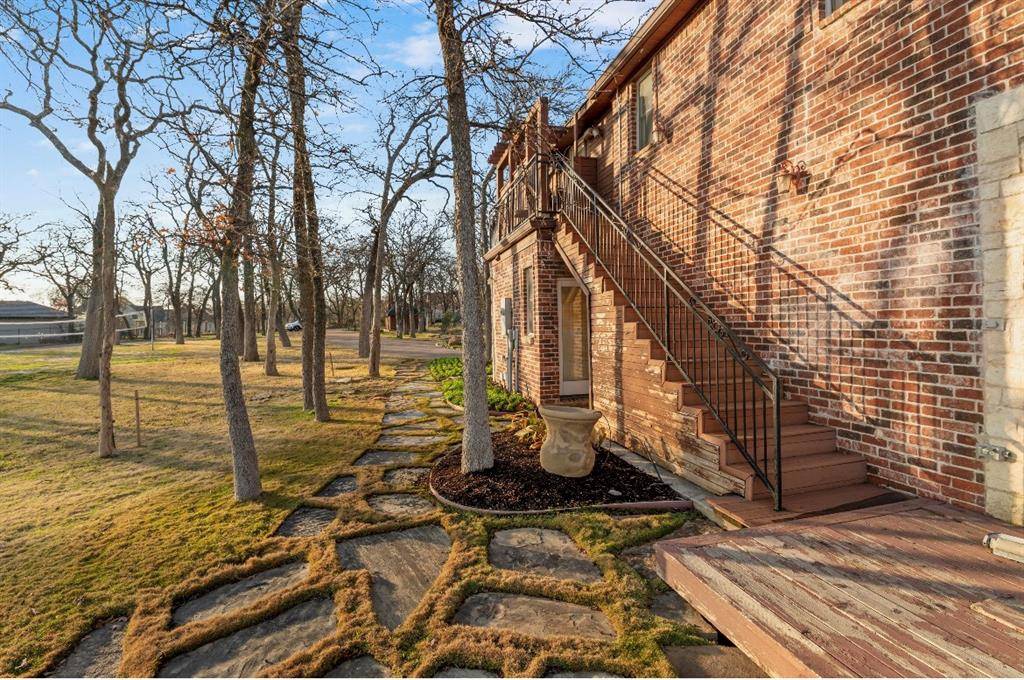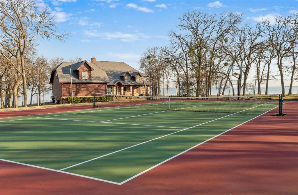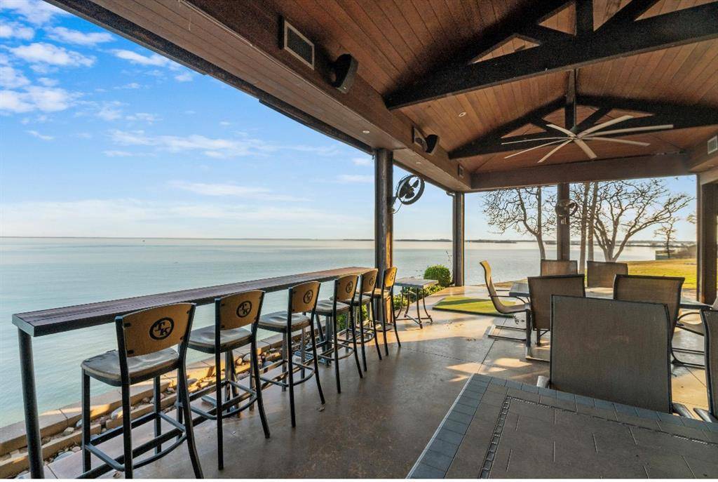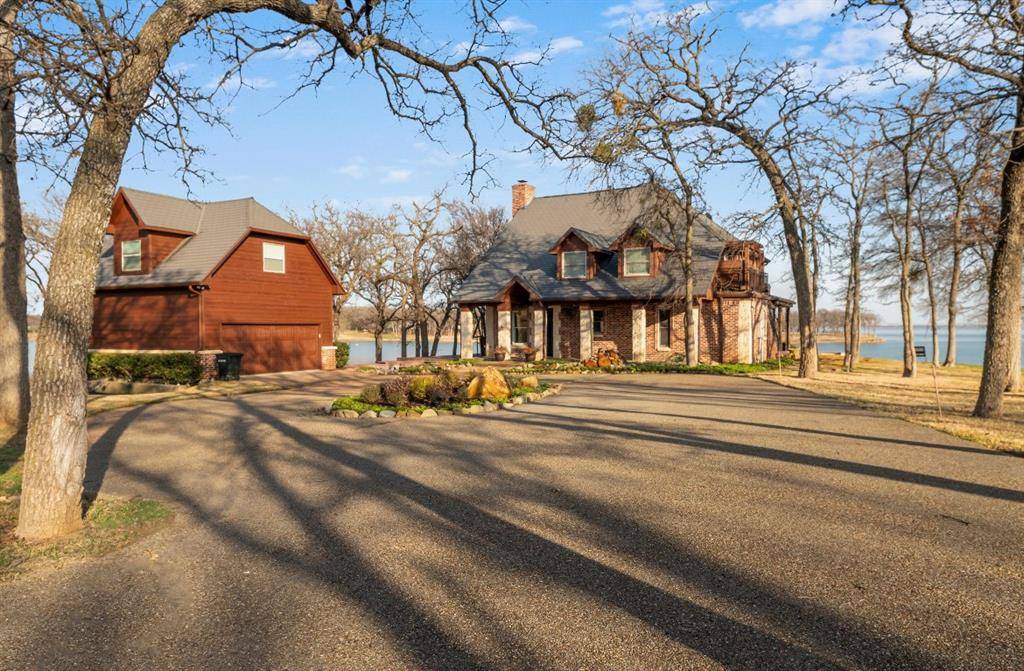 A charming tree-shaded retreat where morning sunlight filters trough the oaks and dances across the water. This inviting home sits just steps from the shoreline, offering panoramic lake views from almost every angle. A gently curving driveway from the private gated entry leads you through beautifully maintained landscaping and welcomes you to a warm, craftsman-style residence with classic dormer windows and a spacious front porch.