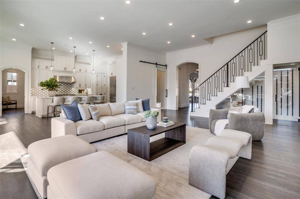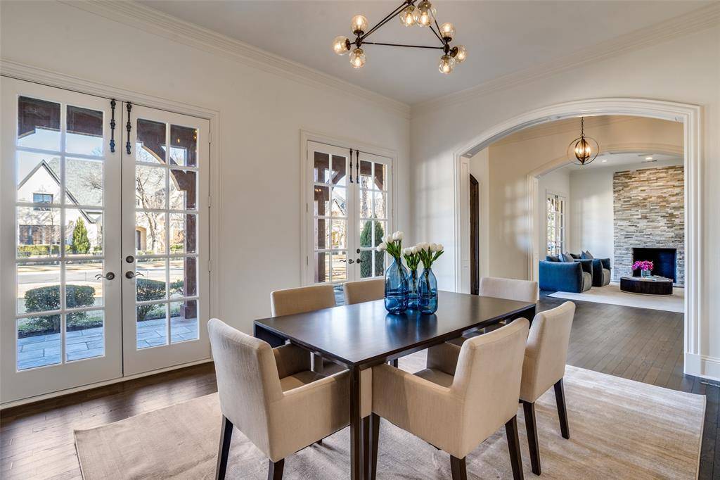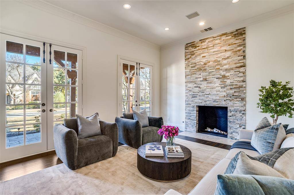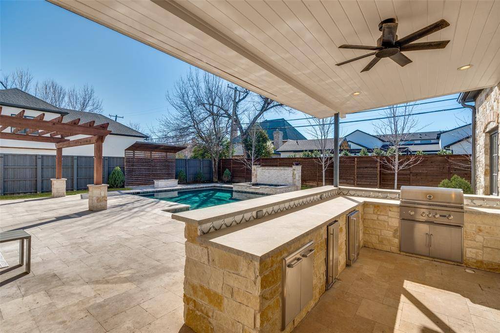 Situated within one of Dallas' most desirable neighborhoods, this Preston Hollow masterpiece home has it all. Grand and open foyer expands graciously into formal dining and formal living room with French doors that open to the wrap around covered patio. Open kitchen-living room with 12-foot collapsible glass panels that open to the outdoor living area, kitchen, pool, spa, and fire pit for a true resort-like living experience. Gourmet kitchen features Thermador appliances, a 48-inch gas range, built in coffee maker, and much more. Downstairs primary suite with sitting area, dual sinks, separate shower and tub, plus sizeable walk-in closets. Four additional bedrooms, all with ensuite bathrooms, a game room, and a living room upstairs. The house has been freshly painted. Perfect for everyday living and entertaining as well.