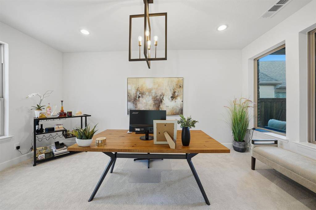 Located in the highly sought-after Tribute community in The Colony, this beautifully maintained home offers an exceptional blend of comfort, functionality, and lifestyle amenities. Situated just a few blocks from the lake, the home enjoys a prime setting within this beautifully planned community. Designed with everyday living and entertaining in mind, it features a thoughtful layout with spacious living areas, abundant natural light, and a seamless flow throughout.