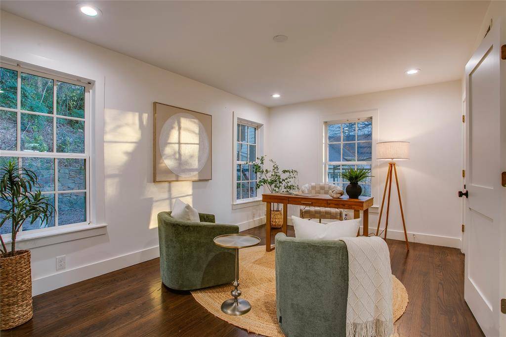 Perched above the fairway, this Kessler Park home lives in quiet conversation with Stevens Park Golf Course. Mornings unfold gently, filtered light through mature trees, walkers and joggers tracing the greens, the neighborhood moving at an easy, familiar pace. Inside, the sense of scale is immediate. High ceilings and expansive rooms create openness without excess, while hardwood floors carry warmth through both levels. Natural light shifts throughout the day, giving each space its own rhythm and calm. The kitchen is grounded and refined, anchored by marble surfaces, professional-grade appliances, and thoughtful storage. It's a space designed for real life, where meals are unforced and time stretches naturally from counter to table. The layout flows seamlessly into the main living areas, supporting both everyday living and quieter moments at home. Upstairs, the primary suite offers true separation and ease. Generous proportions, treetop views, and a feeling of privacy create a place to settle in and recharge. The finished basement adds flexibility, easily accommodating a media room, studio, fitness space, or guest retreat. Outside, stone terraces and a private patio nestle into the landscape. Evenings linger as the light softens, the course grows still, and the city fades to a low hum. An oversized garage adds everyday practicality, while the location quietly does the rest. One of only a handful of homes facing the newly renovated Stevens Park Golf Course, it sits moments from Coombs Creek Trail, Bishop Arts, and the cultural energy of Oak Cliff, with downtown Dallas close enough to feel accessible, yet distant enough to fade away. This is a home shaped by its surroundings and elevated by intention. A comprehensive down-to-the-studs renovation was completed in 2019, with a detailed upgrades list available outlining the full scope of improvements.