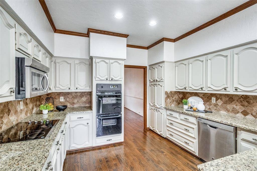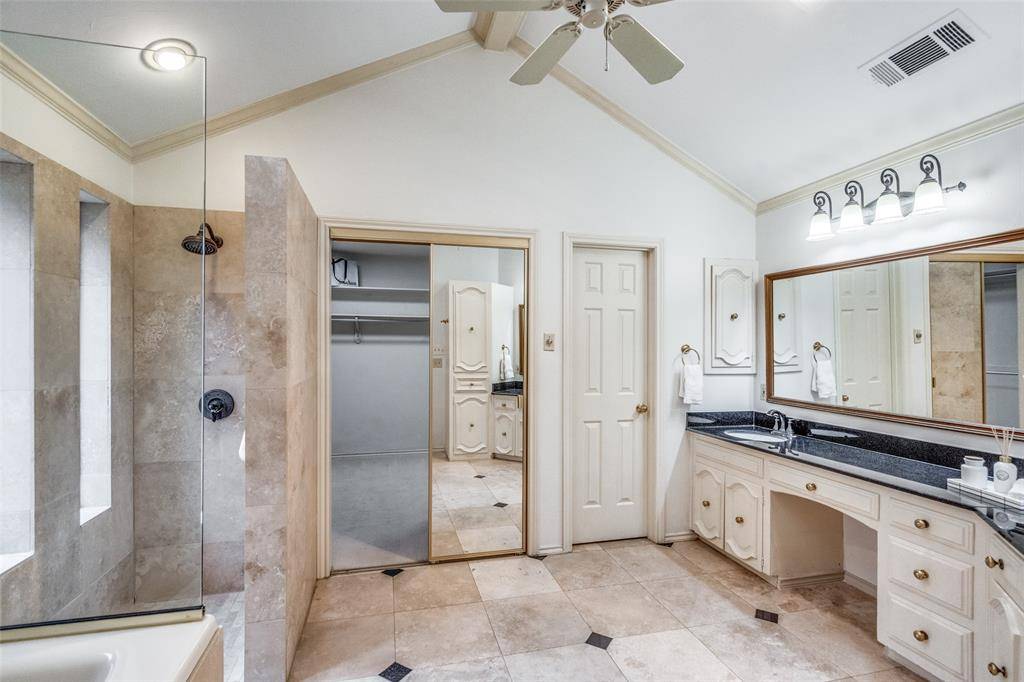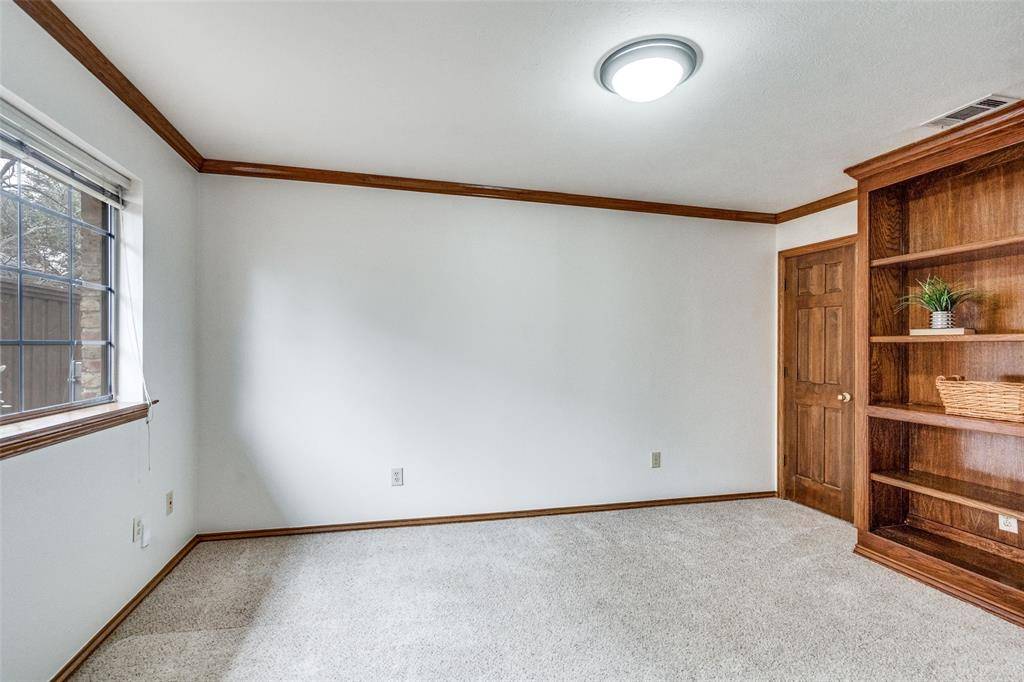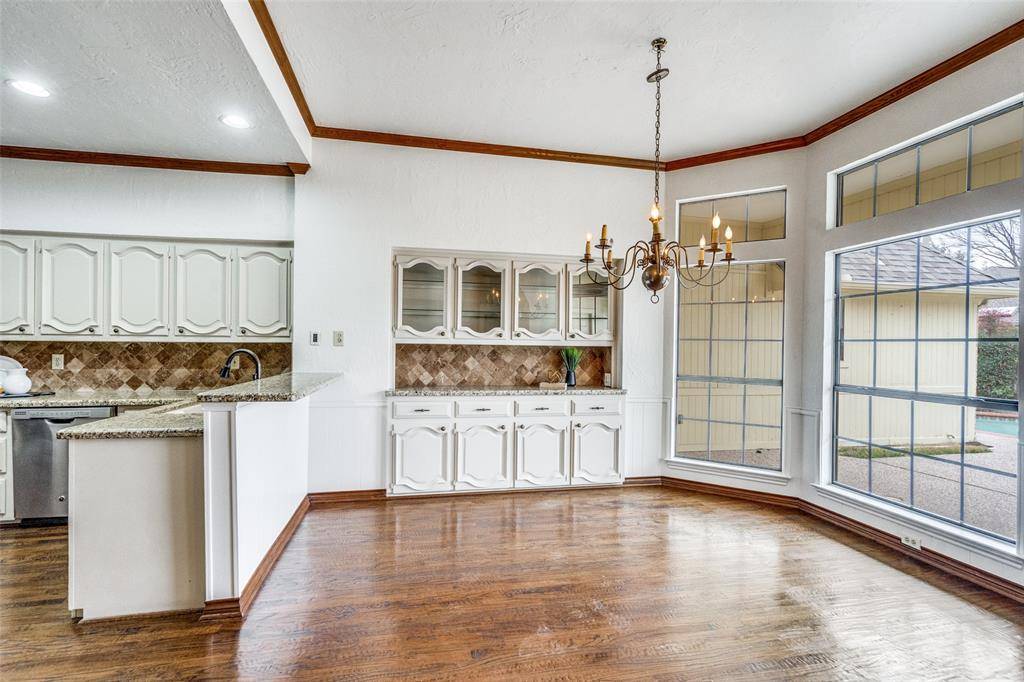 Located in the established community of Old Shepard Place, this classic Plano home offers timeless character, a thoughtful split-bedroom floorplan, and an unbeatable location near top-rated Plano schools. A welcoming entry with beveled glass sets the tone, while plantation shutters and multiple skylights filling the home with natural light. The spacious layout includes four bedrooms and three bathrooms, a formal dining room with a convenient pass-through to the kitchen makes entertaining easy, and the large living room is a true focal point with rich paneling, built-in cabinetry, and a striking stone fireplace. The kitchen is designed for both function and storage, offering a breakfast bar, double ovens, an electric cooktop, and abundant cabinetry, along with a cozy breakfast nook featuring additional built-ins. The family room is off the kitchen with built-in cabinets and a dry bar features a built-in mini beverage or wine refrigerator, creating the perfect spot for hosting and gathering. The private primary suite is generously sized; features wood flooring and offers direct access to the patio and pool area—perfect for morning coffee or evening relaxation. The ensuite bath is filled with natural light from the skylight and includes extensive cabinetry, a built-in hamper, and a large walk-in closet with custom built-ins. All three secondary bedrooms are spacious and two are connected by a Jack-N-Jill bathroom. Out back, enjoy a private retreat with a tall privacy fence, pool, and spa—ideal for entertaining or unwinding at home. Conveniently located near the President George Bush Turnpike and the Dallas North Tollway, this home offers easy access to parks, shopping, dining, and entertainment, while still providing the comfort and charm of a well-established neighborhood. A wonderful opportunity to enjoy classic Plano living in a prime location.