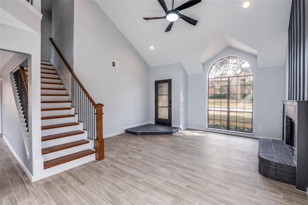 Lifestyle. Luxury. Location. Perched on a premium .23-acre lot overlooking a serene creek, this fully remodeled Carrollton home delivers the style, convenience, and character today's DFW buyers crave. Upon entry, dramatic vaulted ceilings soar above a striking gas fireplace and elongated architectural accent wall — a bold focal point that anchors the expansive living space. Brand-new windows flood the home with natural light from every direction, enhancing the open, airy design. Modern iron balusters pair beautifully with solid oak stair treads, leading to elevated bedroom retreats and an open loft overlooking both the creek and the living area below. The spacious primary suite connects to a spa-inspired ensuite bathroom featuring a freestanding soaking tub, oversized walk-in shower, and dual vanities — curated for both comfort and function. Whether hosting friends or enjoying a quiet morning coffee, the kitchen delivers warmth and connection to nature. Framed by a charming bay window eat-in, this spacious dining scene is a pure SHOWCASE of serenity. Step outside to your newly built deck and experience coveted, creekside living at its finest, complete with private gate access. Perfectly positioned near Castle Hills shops and dining, and just minutes from Grandscapes, Legacy West, The Lakes at Castle Hills Golf Club, and Headquarters Drive — this location is second to none. For a full list of upgrades, appliances, and offer instructions, contact the listing agent.