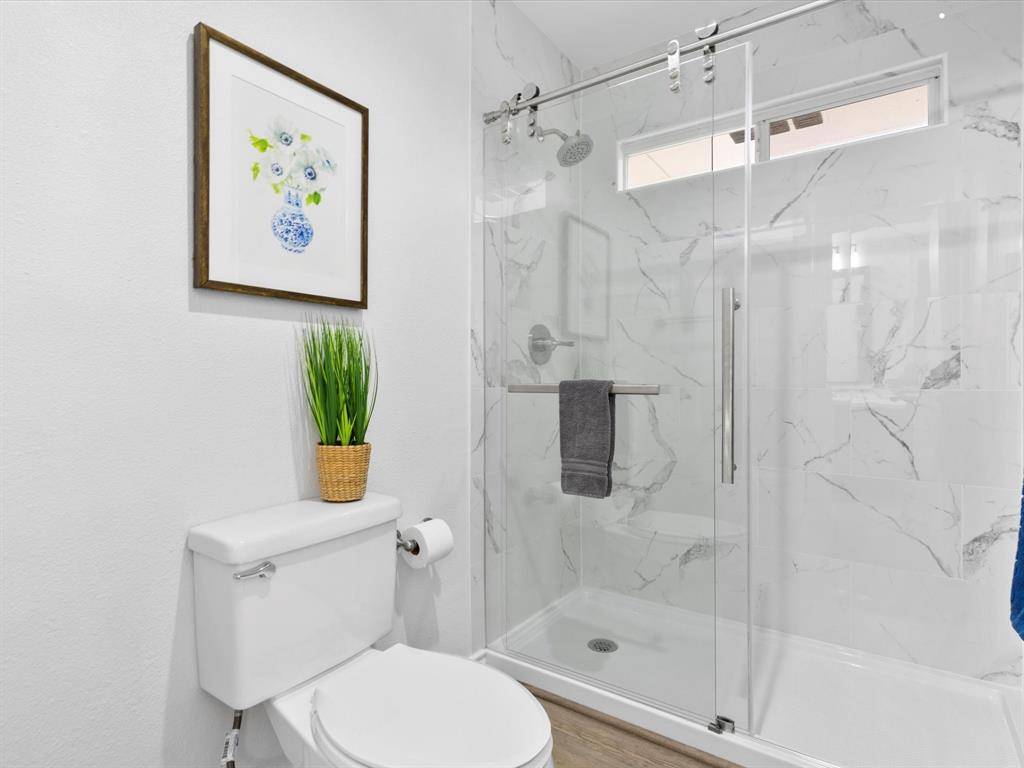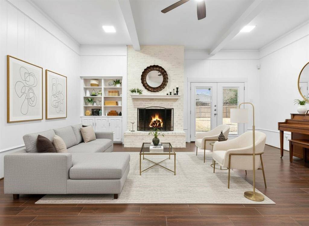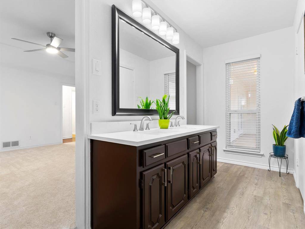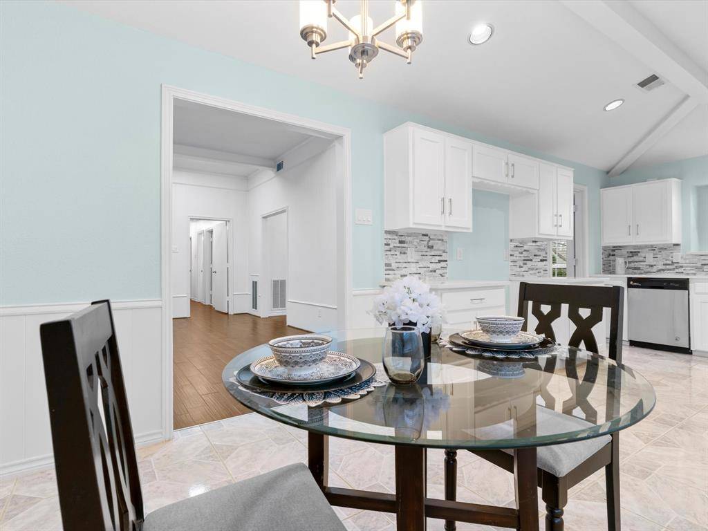 Step inside this beautifully renovated custom built 4-bedroom home in Carrollton's High Country neighborhood, where thoughtful updates and a flexible floor plan make everyday living and entertaining effortless. Major upgrades include complete replacement of all cast iron plumbing and the clean-out with modern PVC plumbing, HVAC system complete replacement (2025), water heater replaced, plus numerous other recent improvements and modern updates that make this home move-in ready. A white brick fireplace anchors the spacious main living area and creates a bright, modern focal point, complemented by tall ceilings. Throughout the home, fresh paint, updated flooring, and thoughtful finishes contribute to a cohesive style. The remodeled kitchen features stainless steel appliances, quartz countertops, backsplash and ample storage, making meal prep stylish, fun and functional. The breakfast nook offers a built-in china cabinet for added storage and display space. The primary bedroom boasts a large ensuite bathroom with dual closets for abundant storage space, dual quartz vanities, dual sinks and a fully renovated glass enclosed walk-in shower. The second full bathroom is equally updated with dual sinks, quartz counters, and a refinished tub-shower. Updated windows provide ample natural light and energy efficiency. The two-car garage provides an option to convert a portion into a private office or hobby space with electrical and a vent already in place. Outside, a covered patio overlooks the landscaped backyard, giving you a shaded spot to relax, grill, or gather. Located in an established Carrollton community just minutes from top rated Carrollton-Farmers Branch open enrollment schools, highways, airports, restaurants, shopping and entertainment, this home supports an enjoyable lifestyle for years to come. You'll love the home's location close to Carrollton's Blue Trail with walking paths, parks and ponds along the greenbelt.