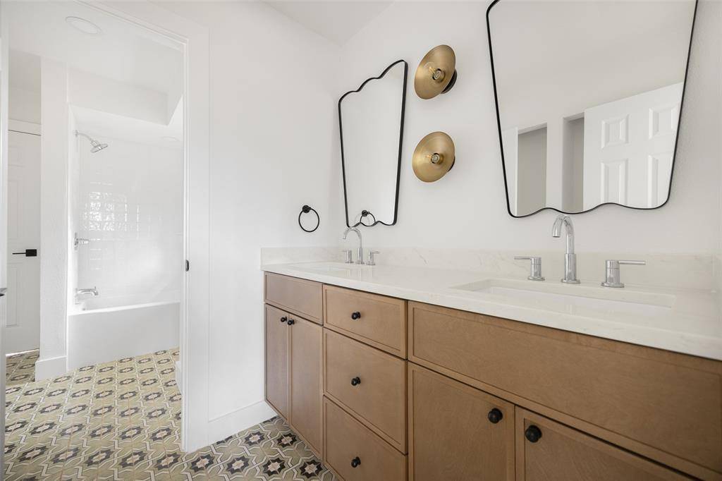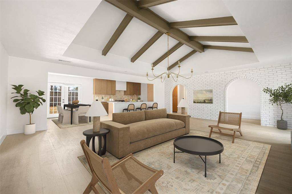 Thoughtfully renovated single-story home in the heart of Plano, this stylish ranch at 2716 Grandview Drive blends warm modern finishes with timeless charm. Spacious living and dining areas feature vaulted beamed ceilings, a painted brick fireplace, wide-plank flooring, and expansive windows that flood the home with natural light. Custom kitchen boasts quartz countertops, shaker cabinetry, stainless steel gas range, and a large island open to the living room—ideal for everyday living and entertaining. Split-bedroom layout provides a private primary suite with a beautifully updated bath, double vanity, walk-in shower, and generous closet space, while secondary bedrooms share a chic, fully remodeled bath. Designer lighting, updated fixtures, and neutral tones throughout create a truly move-in ready interior that lives like a new home. The painted brick exterior, mature trees, and fresh landscaping offer inviting curb appeal, with a covered entry that welcomes guests inside. Located in established Dallas North Estates, you are minutes from major arteries including US-75, George Bush Turnpike, and Preston Road, putting Legacy West, The Shops at Willow Bend, Haggard Park, and Oak Point Nature Preserve within easy reach for shopping, dining, and outdoor recreation. Served by highly regarded Plano ISD schools, with nearby elementary, middle, and high school options plus convenient access to Plano's magnet and academy programs. Everyday essentials are close by with multiple grocery stores, retail centers, medical facilities, and DART Park-and-Ride options just a short drive away. This is a rare opportunity to own a fully updated home on a quiet, tree-lined street in central Plano.