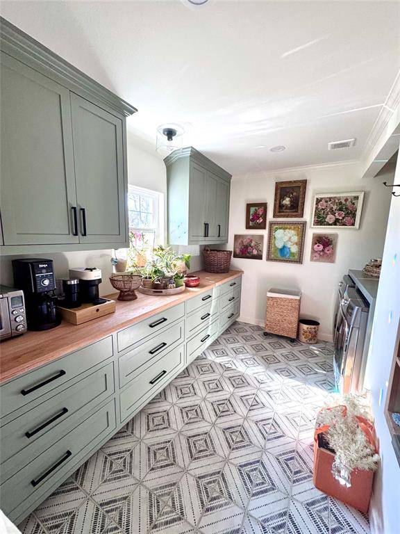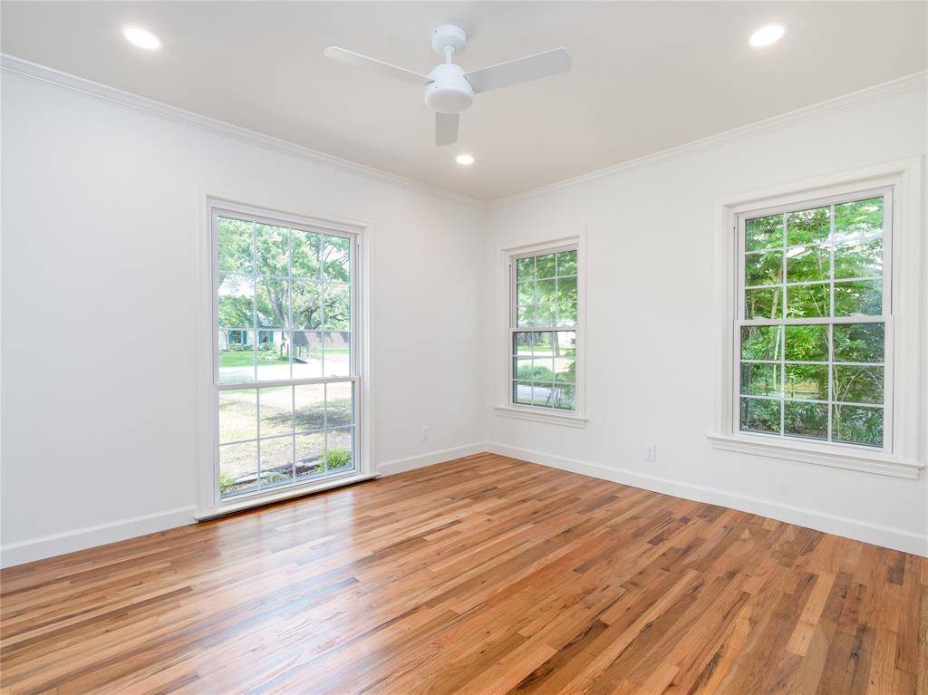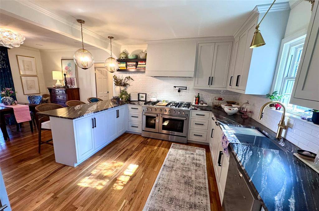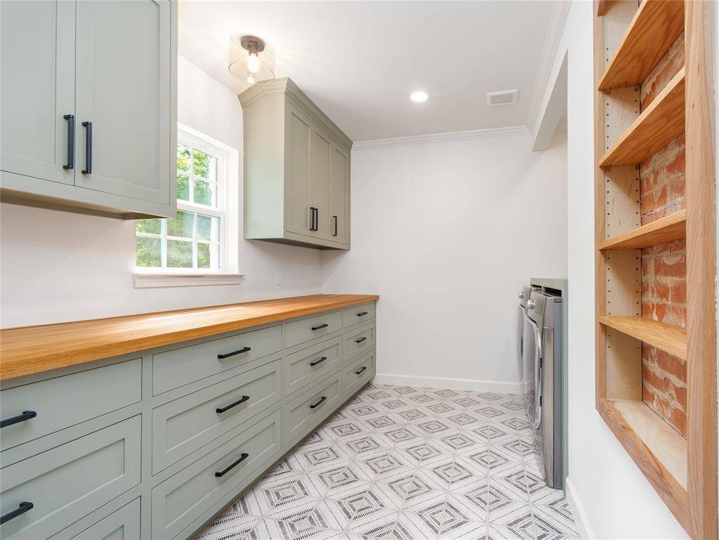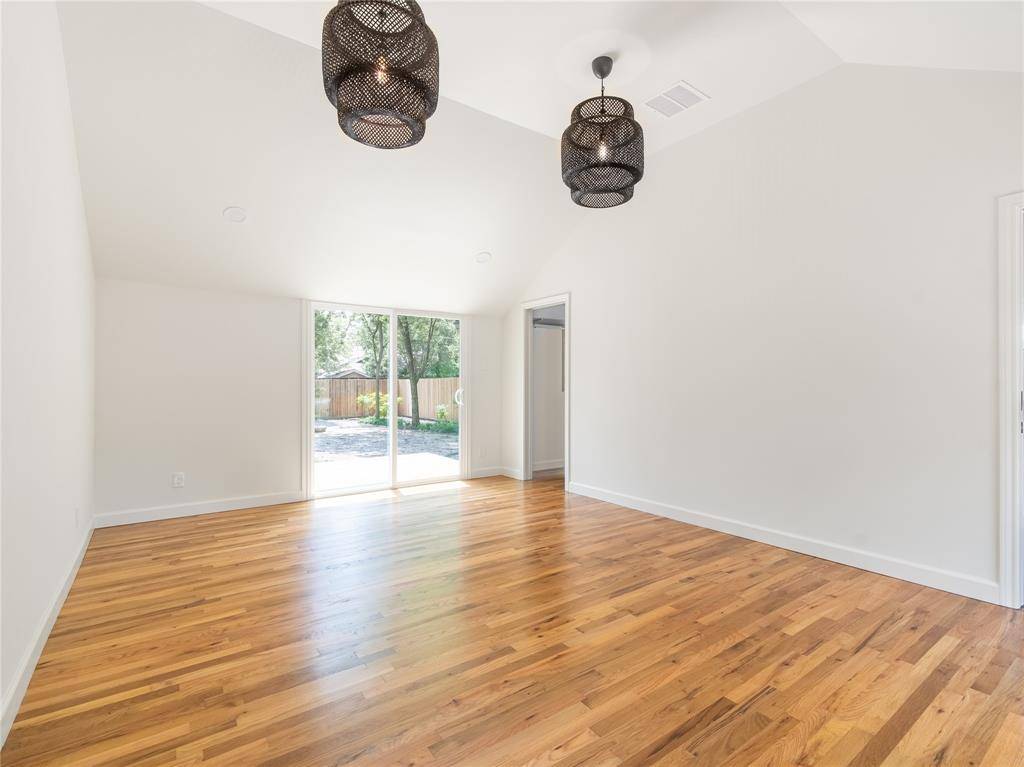 The thoughtfully designed kitchen includes a breakfast bar, open shelving, and an ample supply of cabinets and drawers, complemented by a built-in refrigerator, a 48-inch gas range, a pot filler, a pantry, and convenient access to the backyard. The oversized laundry room, equipped with cabinetry and countertops, also serves as a craft area or butler's pantry. All major mechanical systems have been thoroughly addressed and updated, including the installation of a 5-ton Trane HVAC system, new ductwork, PVC plumbing beneath the kitchens and bathrooms, updated plumbing fixtures, a tankless water heater, recent gas line, and custom cabinets and lighting throughout. The original hardwood flooring has been beautifully restored, with real hardwoods added in the primary bedroom to match. The primary suite features vaulted ceilings, a walk-in closet, and direct access to the backyard. Set on a generous .44-acre lot, this property offers a tranquil and private setting, surrounded by a wooden fence, providing a blank canvas for your landscaping vision. There is plenty of room for the addition of a detached garage or carport at the back of the lot with access through the alley. Don't miss this precious East Dallas Home just minutes from downtown Dallas and less than a mile from the Dallas Arboretum and White Rock Lake!