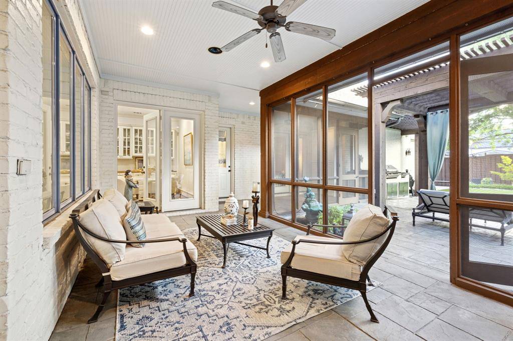 This exceptional custom-built residence is set in a quintessential Dallas neighborhood close to all the private schools and offering a rare opportunity with over 6,000 sq ft - plus an approx. 950 sq ft of walk-in unfinished flex space, ready to make your own with HVAC ready. Set behind a wide circular driveway and beautifully manicured gardens, this Nantucket style home was meticulously crafted and thoughtfully designed by the present owners to reflect multigenerational living with every age group in mind. Inside, soaring 10-ft ceilings and light filled living spaces flow seamlessly from room to room, w warm hardwoods and walls of windows + French doors. The gourmet kitchen contains Monogram appliances, Labradorite countertops, a Shaw's farmhouse sink, an expansive walk-in pantry and two-sided butler's area, all connecting to the fabulous screened porch w fireplace. Every bedroom offers a private ensuite bath, including a tranquil primary suite with sitting room, dual walk-in closets, soaking tub, oversized shower, and private laundry. Two additional master-sized bedrooms located on the first floor, ideal for guests or in-law suite. Upstairs, enjoy a game, media room or exercise room, 2 ensuite bedrooms, lounge area with wet bar, and access to the enormous bonus attic. Additional features include ELEVATOR, storm-safe room, HVAC'd large storage room, home generator, mosquito misting system, GEM lighting, over engineered foundation, remote hurricane screens, reduced noise sub-flooring and sound reduction insulated walls throughout, Nov 2025 roof. The tranquil backyard space is a private sanctuary- with a cedar pergola, built-in grill, putting green, and a sport court with basketball hoop, security cameras and commercial grade gate. Walk to Hockaday and enjoy close proximity to Jesuit, St Rita, St Marks and all this beloved quiet neighborhood has to offer.