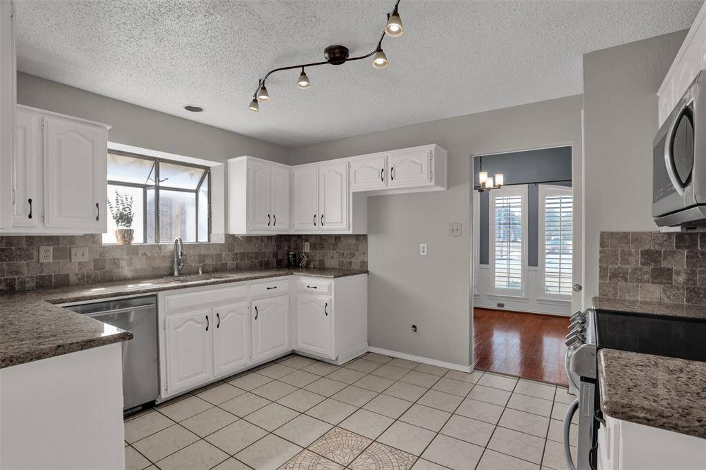 Charming single-story former model home in the highly sought-after Biltmore Swim & Racquet Club community! This well-designed 3-bedroom, 2-bath home features a functional and inviting layout with a formal dining room and a spacious family room highlighted by beautiful flooring and plantation shutters. The bright kitchen and living areas flow comfortably for both everyday living and entertaining. The solidly built 2-car garage includes skylights and windows, bringing in excellent natural light—perfect for projects or extra workspace. Major recent improvements provide peace of mind, including foundation work completed in September 2025 with a transferable warranty, and underground sewer lines replaced with PVC pipings in October 2025. Ideally located with convenient access to shopping, dining, and major highways. Just minutes from the Bluebonnet Bike Trail and Lone Star Park. Priced below 2025 tax county value. Garage used to be the model home office; garage AC is no longer active. Some photos are virtually staged.
