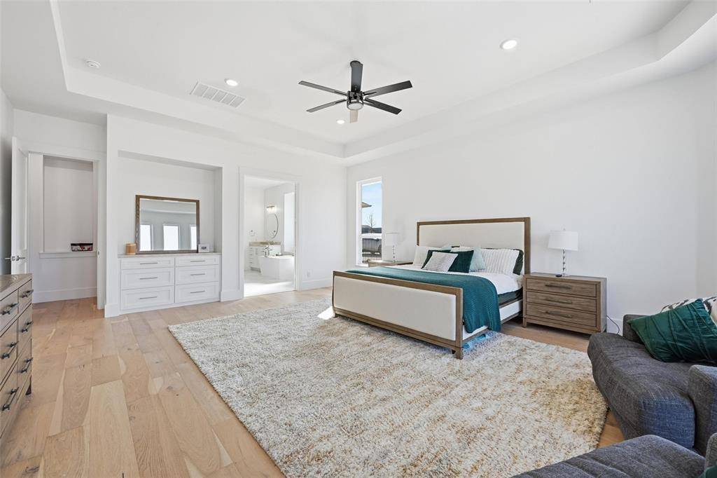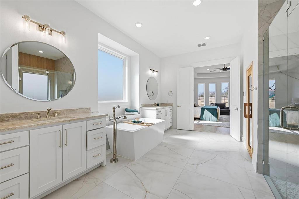 Situated on scenic acreage in highly sought-after McKinney ISD within the Gated Community of Waterstone Estates, this 5,515-square-foot custom estate is a masterclass in luxury, design, and functionality. Offering six bedrooms and six full bathrooms, the home features two primary suites and a flexible sixth bedroom ideal for an office or fitness studio. Dual HVAC systems with a damper-controlled secondary unit and three thermostats ensure comfort throughout. The Primary Suite features a Sauna within the Primary Bathroom.