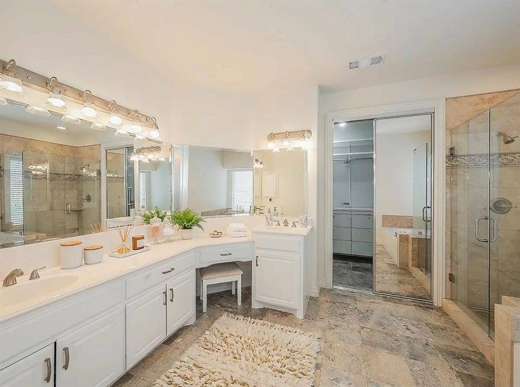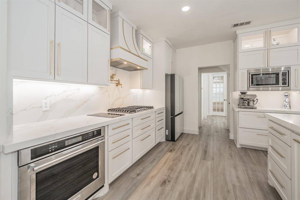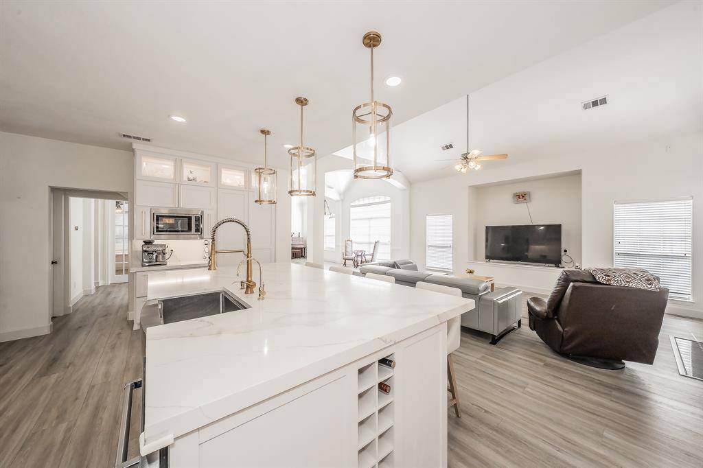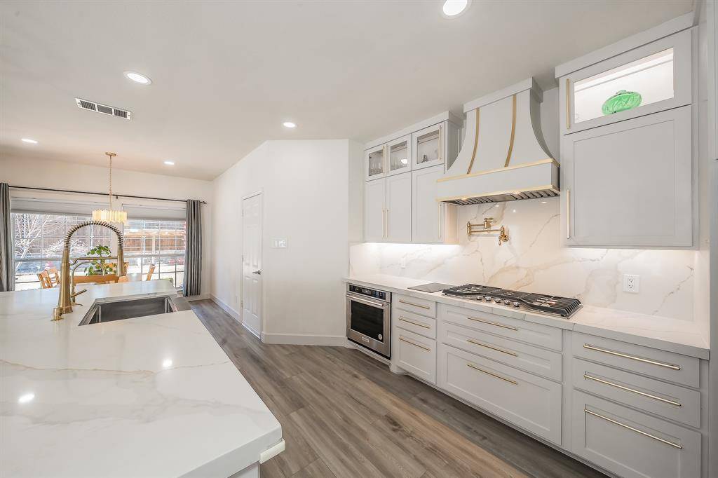 Timeless Luxury Meets Everyday Comfort in Saddlebrook Estates. Welcome to an exceptional opportunity in coveted Saddlebrook Estates — where elegant design and family functionality come together in one of Plano's most desirable communities. Nestled on a quiet, wide street just steps from a tranquil pond with a scenic water feature, this beautifully renovated 4-bedroom, 3.5-bath residence offers 3,636 square feet of thoughtfully designed living space. Step inside to discover elevated everyday living. The fully renovated chef's kitchen is the heart of the home, featuring new stainless steel appliances, a main gas cooktop plus an induction cooktop, a convenient pot-filler faucet, custom cabinetry, an expansive walk-in pantry, and a built-in coffee station perfect for busy mornings. Quartz countertops with mitered edges, luxury vinyl plank flooring throughout, and LED ambient lighting create a warm, sophisticated atmosphere in every room. A striking iron-baluster staircase leads to generously sized upstairs bedrooms, while the open-concept downstairs layout flows effortlessly for both family gatherings and entertaining. The home's brick and stone exterior is enhanced with distinctive copper awnings, delivering impressive curb appeal. Out back, a spacious yard provides ample room for play, pets, or future outdoor enhancements. A 2.5-car garage offers additional storage flexibility, and HOA-maintained landscaping ensures low-maintenance living. Additional peace of mind comes with a brand-new AO Smith water heater backed by a 9-year warranty, plus two HVAC systems under warranty through 2027. Zoned to highly acclaimed Plano Independent School District, this home offers not only luxury and comfort but also exceptional long-term value. A rare blend of style, space, and location — this is Saddlebrook living at its finest.