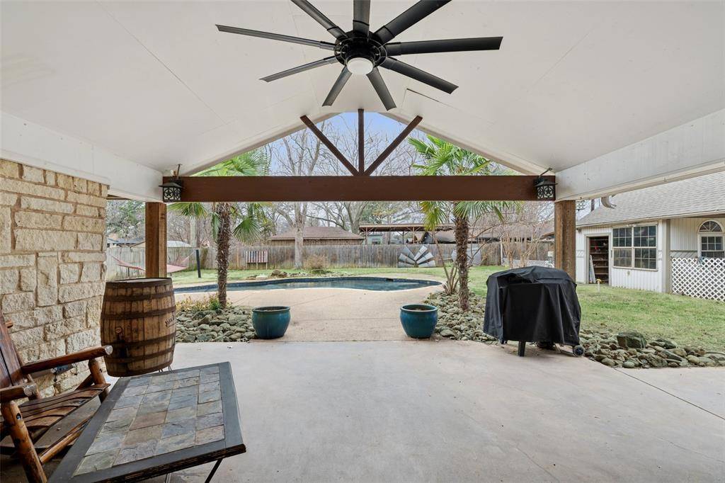 GRAPEVINE LAKE ESTATES- PRIVATE LAKE ACCESS WITH RARE DEED BOAT SLIP (1 of 25-avoid wait list)!! Situated on a generous .49 acre lot. Enjoy partial lake views of Grapevine Lake from the front of the home with lakeside trails just a short stroll away! The lot has a circle drive and side driveway with plenty of space for privacy and parking. The home is almost 4000 sqft and offers 4 bedrooms, 3.5 bathrooms. Two spacious living areas, ideal for entertaining, a game room, or a flex space and an office. Beautiful hardwood floors throughout and fully remodeled open-concept kitchen and great room with cathedral ceiling and cedar beams. All new cabinets, granite countertops, built-in microwave, electric range, farmhouse sink, wet bar and large island! Large covered 2-car carport and workshop ideal for hobbies, storage, or lake toys provides the perfect space for hobbiests and enthusiasts! Loads of space for tools, lawn equipment and much more! Large WALK-through attic above workshop provides ample storage space. Expansive Backyard with a beach entry pool with newly resurfaced pebble tec in 2023. Covered back patio great for entertaining. Side garden area, spa hookup and concrete platform ready for a hot tub with access from the spacious ensuite bedroom with newly updated bathroom. Well-built chicken coop that can be stocked with farm fresh eggs! This home includes your own deeded BOAT SLIP at the private community Lake Forest Boat Club. Quiet lake-living setting close to historic downtown Grapevine and Southlake Town Square shopping, dining, and top-rated schools. Some projects, including the primary bathroom and roof, are reflected in the price, giving buyers a chance to customize the final touches while capturing a hard-to-find combination of lot size, lake access, and neighborhood prestige. This is a rare opportunity to secure a true lake-lifestyle property in one of Grapevine's most desirable communities.