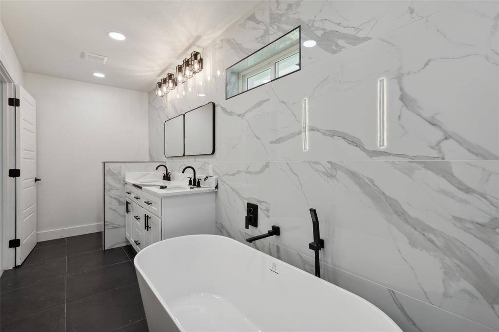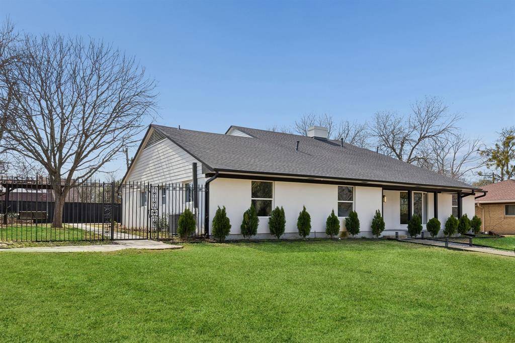 Discover your dream home in the heart of Farmers Branch! This completely renovated 1.5-story gem has been meticulously updated and is truly move-in ready. Just a short walk to beautiful Farmers Branch parks, including Mallon Park with its serene river walkways, the location perfectly blends convenience with natural charm. Step inside to sleek white walls and light hardwood floors that flow seamlessly throughout the open floor plan. The versatile formal living room, highlighted by charming bay windows, offers a welcoming space for a cozy sitting area with lovely front yard views. The grand living room showcases a dramatic floor-to-ceiling fireplace, creating a warm and inviting atmosphere ideal for both relaxing and entertaining. Tucked at the end of the living area, double French doors open to a private study, the perfect work-from-home retreat or quiet reading space. The spacious dining area transitions effortlessly into an exceptional kitchen featuring quartz countertops, crisp white cabinetry, a gas cooktop, and a stylish barn door concealing the pantry for a designer touch. The private primary suite serves as a serene escape, complete with a custom closet and a spa-inspired bath designed for ultimate relaxation. Generously sized guest bedrooms provide comfort and flexibility for family and visitors, while the upstairs game room offers endless possibilities as a media room, playroom, or additional lounge space. Step outside to your own backyard oasis. A covered patio with pergola overlooks the sparkling pool and spa, creating a peaceful, private retreat that's perfect for entertaining or unwinding at the end of the day.