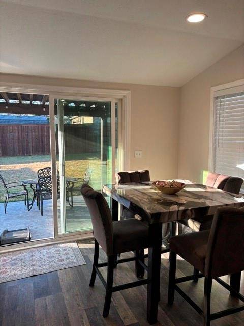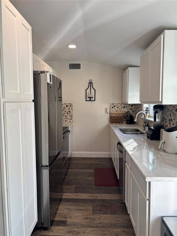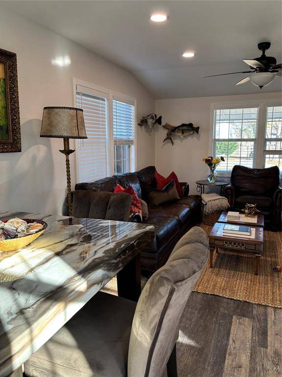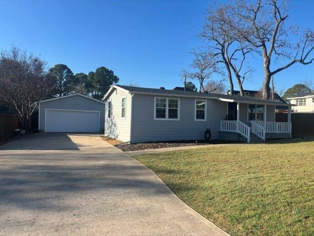 Cute as a button!! Quaint tiny home with all the amenities. Two-bedroom, one bath, with HUGE Oversized detached 2 car garage and separate storage building. Home was completely remolded in 2021 down to studs featuring all luxury vinyl plank flooring throughout, 2-inch faux wood blinds, neutral paint, 6-inch baseboards, tiled shower and tub, marble kitchen counters, stamped concrete covered back patio, adorable front patio, and tons of natural light from all the windows. Large fenced in backyard with 8-foot cedar fence and a large, long driveway. Walking distance to Grapevine Lake. Refrigerator with ice maker and washer-dryer to remain on property. Pets on case-by-case basis allowed.