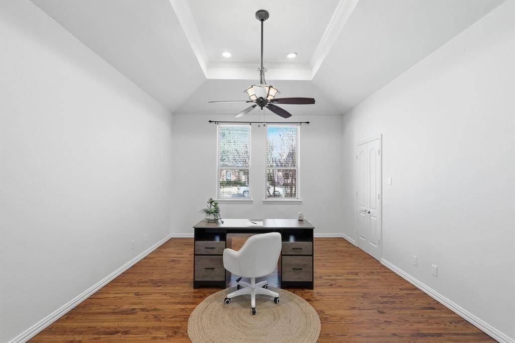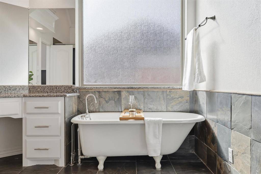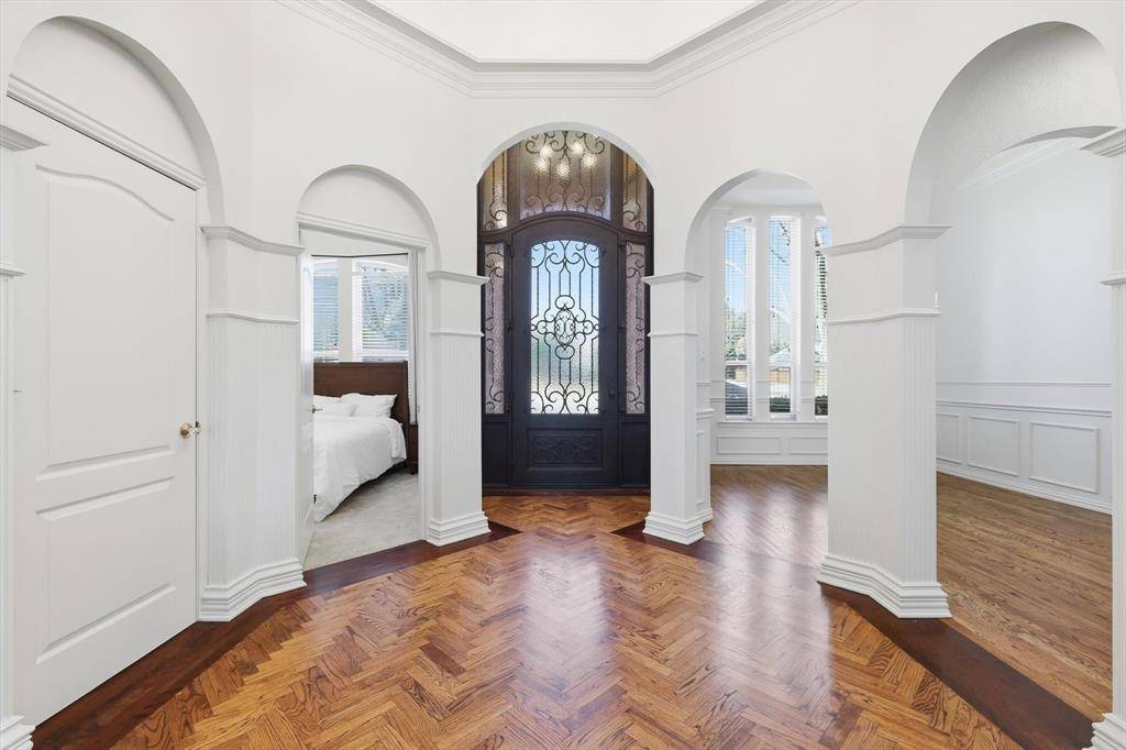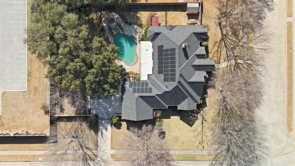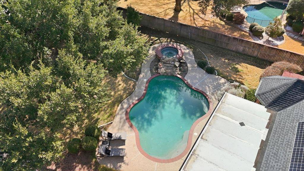 Welcome to 5809 N Ballantrae Drive in the prestigious Highland Meadows community, where elegance meets everyday comfort. Step inside and you're greeted by soaring ceilings, rich hardwood floors, fresh neutral paint, and natural light. The thoughtfully designed single-story layout offers an open floorplan. The kitchen has granite countertops, an island and flows seamlessly into the family room with an idyllic wood-burning fireplace. Separate formal dining room has wainscoting and is perfect for everyday or holiday meals. The dedicated office or secondary living space is ideal for working from home or relaxing with family. The spacious primary suite is a true retreat, complete with a sitting area for reading and a spa-inspired bath featuring a classic claw-foot soaking tub, an oversized walk-in shower and closet. Two secondary bedrooms share a Jack-and-Jill bath, while an additional bedroom with its own en suite bath provides an ideal space for guests or multi-generational living. Outside, the home is just as impressive. Situated on a lush corner lot with a gated driveway and three-car garage, it offers exceptional curb appeal. The backyard is designed for entertaining and unwinding alike; featuring a sparkling pool and spa, mature landscaping, and a covered patio perfect for grilling, gathering, and hosting pool parties on warm Texas evenings. With solar panels and a well for landscaping water, you'll enjoy impressive energy efficiency and utility bills that are much lower than your neighbors. Located in the highly acclaimed Grapevine-Colleyville Independent School District, minutes from major highways and Dallas-Fort Worth International Airport, and just a short drive to premier shopping and dining at Southlake Town Square, Historic Downtown Grapevine and Grapevine Lake for hiking and biking. This home offers not just luxury, but an exceptional lifestyle. Come experience the best of Ballantrae and make this remarkable home your own.