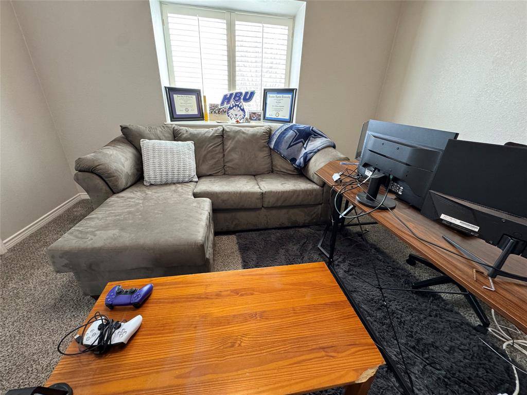AVAILABLE FOR SALE OR LEASE. Welcome to this immaculately 3 bedroom, 2.1 bath home nestled in a well-established neighborhood. From the moment you arrive, the charming curb appeal and striking red front door create a warm and inviting first impression. Step inside to a grand entry featuring soaring ceilings and an abundance of natural light that immediately set the tone for the home's open feel. Just off the entry, a spacious flex room offers versatility—perfect as a home office or additional sitting space to fit your lifestyle. The main level offers both formal living and dining areas, along with a spacious second living room complete with a gas fireplace and a newly installed ceiling fan. The kitchen is thoughtfully updated and features a new gas cooktop and vent, new sink, freshly painted cabinetry with updated hardware, stunning quartz countertops, and a center island—perfect for both everyday living and entertaining. The formal dining room showcases elegant crown molding and decorative lighting. All bedrooms are located upstairs, offering privacy and separation from the main living areas. The expansive primary suite is a true retreat, featuring dual vanities, a deep soaking tub, separate shower, and a large walk-in closet. Two additional generously sized bedrooms share a full bath with an extended vanity, providing plenty of space. This home offers an ideal layout for entertaining or simply relaxing in comfort. The backyard is perfect for unwinding under the stars or enjoying the shade of mature trees. Thoughtful details throughout—including bay windows, crown molding, updated lighting, updated flooring, and more—add to the home's appeal. Conveniently located with easy access to major highways, shopping, dining, and entertainment, you're also less than one mile from Barry H. Barker Park and under half a mile from Charles McKamy Elementary School. All furniture is negotiable, offering a wonderful opportunity for a truly move-in-ready experience. Welcome home.