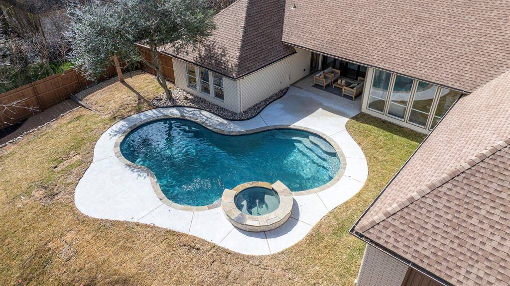 ***MULTIPLE OFFERS. PLEASE SUBMIT HIGHEST & BEST by Mon., 2.23 10:00 am CST*** Set in Southridge Lakes, 1621 Pecos Drive brings together an extensive renovation, hand-selected designer finishes, & indoor-outdoor living that feels effortlessly elevated. Double iron front doors lead into a bright, inviting main living area featuring a sleek linear fireplace flanked by built-in shelving, & a ghost-style sliding door that leads out to the covered patio,heated pool & spa, & expansive backyard with pergola & plenty of room to roam. The kitchen is designed for gathering & entertaining, anchored by an oversized island with designer pendants,Arabescato marble backsplash,quartz countertops,stainless appliances,gas cooking,two convection ovens—one w air fryer features, and an abundance of cabinetry custom designed & built by ProCraft. A three-tone custom paint scheme, and two-tone metal finishes add a curated look throughout. The dining space with tall windows and a statement chandelier makes weeknights and celebrations feel equally special, & an additional living area offers flexibility for hosting or relaxation. In the primary suite, a Gracie Oaks chandelier sets the tone, complemented by a custom closet system in the walk-in closet and a spacious spa-like retreat bath featuring a dual-sink vanity and an oversized walk-in shower with bench and water closet. The upstairs offers a large flex space and an additional living area with solar tube skylights and plenty of windows that offer lots of natural light. This room has endless possibilities. Outside, enjoy a covered back patio, updated heated pool and spa,bkyd landscaping w. a pergola, front & backyard landscape lighting. Southridge Lakes HOA offers a competition-size pool & wading pool,large covered pavilion,clubhouse,basketball court,volleyball court,four tennis courts,and eight lakes. Carroll ISD schools serve the area, with easy access to both Dallas and Fort Worth and quick trips to DFW International Airport.