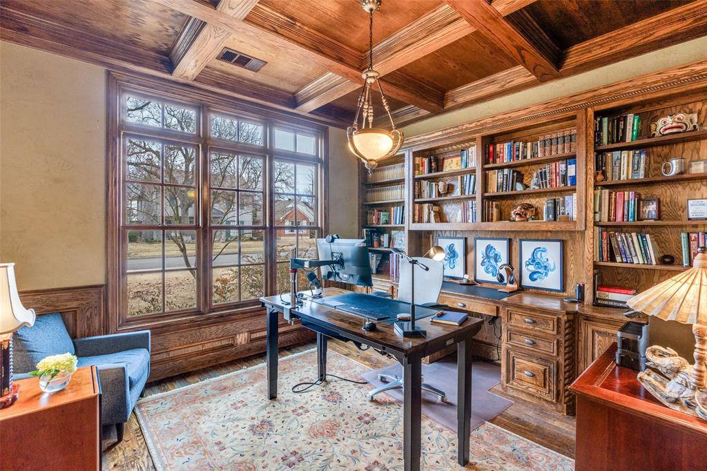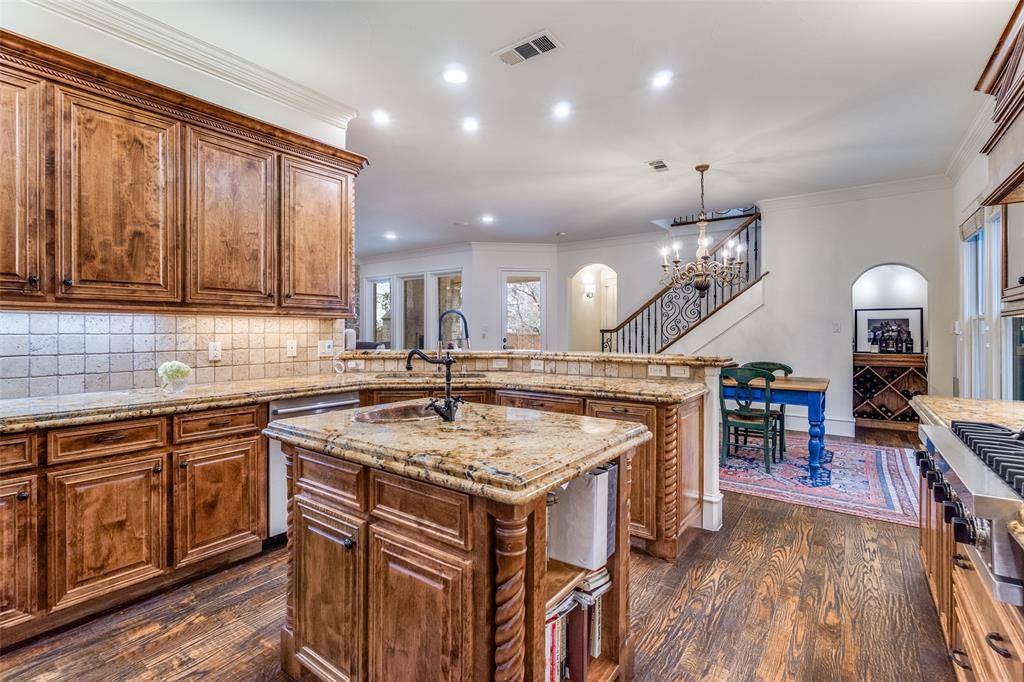 Location, location, location! Welcome to 3325 Amherst—an outstanding family home in the heart of University Park. This meticulously maintained 5-bedroom, 5-full-and-1-half-bath residence spans 4,339 sq. ft. with 4 living areas, designer finishes, and recent updates including fresh paint, new carpet, and updated lighting. The entry greets you with a dramatic 20-foot entry, split formal living-dining rooms, HRDW floors, and a beamed-ceiling office featuring built-in bookcases. The formal dining flows into a chef's kitchen via a butler's pantry with wine refrigerator and large walk-in pantry. Open family room boasts a gas log fireplace, custom cabinets, surround sound, crown molding, an open bar, and stunning views of the professionally landscaped backyard with covered patio and serene fountain. The kitchen shines with stainless steel appliances, a 6-burner Viking gas cooktop with pot filler, spice drawer, Viking double-door refrigerator, microwave, double ovens, Bosch dishwasher, granite counters, and custom alderwood cabinets plus adjacent breakfast nook and dedicated wine room. Upstairs, the oversized primary suite offers a sitting area, wall of windows overlooking the backyard, gas log fireplace, coffered ceiling, built-in speakers, and refreshed paint & carpet. Primary bath features marble counters, double sinks, walk-in shower, jetted tub, built-in vanity, enclosed WC, large walk-in closet with custom built-ins. Four additional bedrooms include one ensuite, two sharing a Jack-and-Jill bath, and a flexible fourth room (ideal as bedroom or bonus) with adjacent full bath. Step outside to a stunning entertainer's retreat: covered patio, wood-burning fireplace, JennAir gas BBQ, serene fountain, in-ceiling speakers, and lush landscaping. Just steps from Snider Plaza dining & shopping, Holmes Aquatic Center, Curtis Park, and top-ranked University Park Elementary (consistently in Texas's top 1%). Enjoy true community spirit, this is University Park living at its finest!