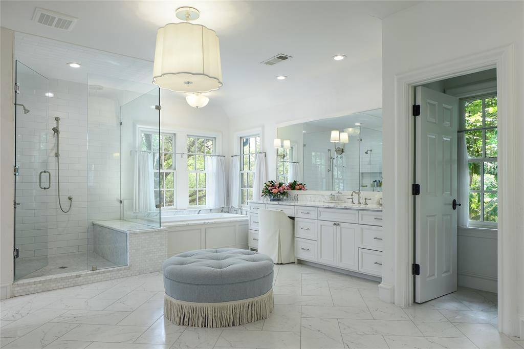 Sited on a premier 0.53-acre corner lot in the heart of Devonshire, 5460 Surrey Circle blends timeless tradition, undeniable charm, and luxurious finishes. Built in 1940 and expanded and renovated meticulously over the years, this elegant 5,950 SF home offers a classic floor plan, lush grounds, and thoughtful updates throughout including a whole-house generator, stunning 1,000+ bottle wine cellar, and a total landscape transformation with Lueders limestone hardscaping, zoysia grass, turfed play area, lap pool and mature trees. Inside, designer finishes impress and the traditional floor plan features formal living and dining rooms, a vaulted family room, and a private library opening to the backyard. Upstairs is a generous primary suite with sitting area, balcony overlooking the back yard, marble bath and walk-in closet. Across the hall are two additional bedroom suites with walk-in closets and timeless marble bathrooms. Up the back staircase is a 4th, private bedroom suite, a game room, and a built-in desk area. The primary bath was updated in 2021, all of the secondary baths were updated in 2018, and the kitchen and appliances have been updated in the last few years. With modern updates, classic architecture, and extraordinary outdoor living - all walkable to Lovers Lane and Inwood Village - this Devonshire gem is truly one of a kind.
