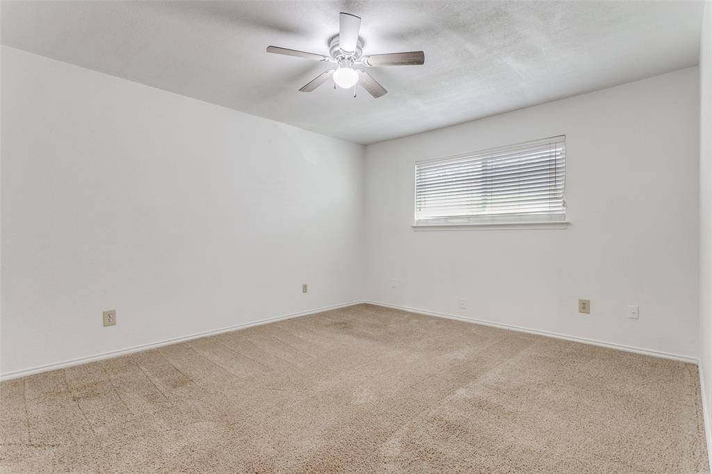 Nestled on a quiet cul-de-sac in the sought-after Timberline Estates, 2121 Stone Moss Lane offers the perfect blend of tranquility and modern convenience. This meticulously updated 1.5-story half duplex, bungalow is a rare find, boasting a dual primary layout that caters perfectly to empty-nesters, first-time buyers, or savvy investors. Step inside to an expansive, sun-drenched great room featuring soaring cathedral ceilings and a classic brick wood-burning fireplace. The heart of the home has been completely transformed with designer touches, including sleek quartz countertops in the kitchen, freshly painted cabinetry, and a suite of brand-new stainless-steel appliances—featuring a double oven for the home chef. Rustic wood-look luxury vinyl plank flooring flows seamlessly through the main living areas, offering both durability and timeless style. With a private primary suite on the main level and a second master retreat upstairs, the floor plan offers unmatched flexibility. Located just steps from the highly rated Grapevine High School. This is more than a home; it's a lifestyle opportunity in a premier North Texas location!