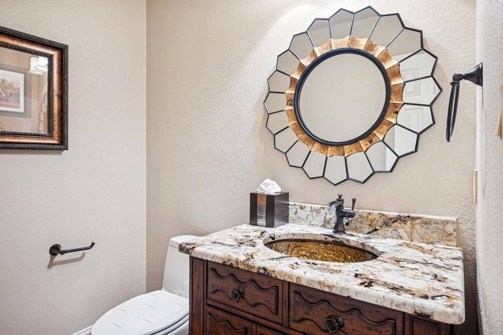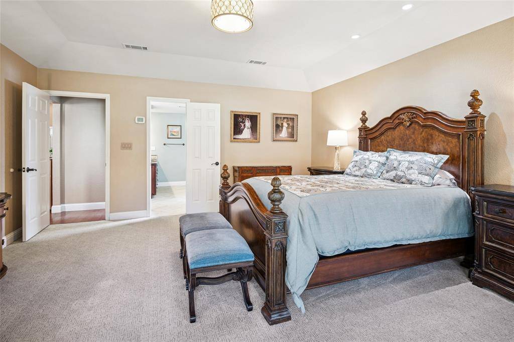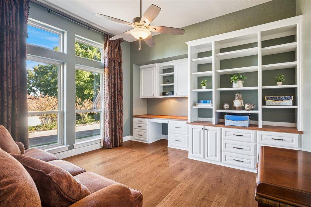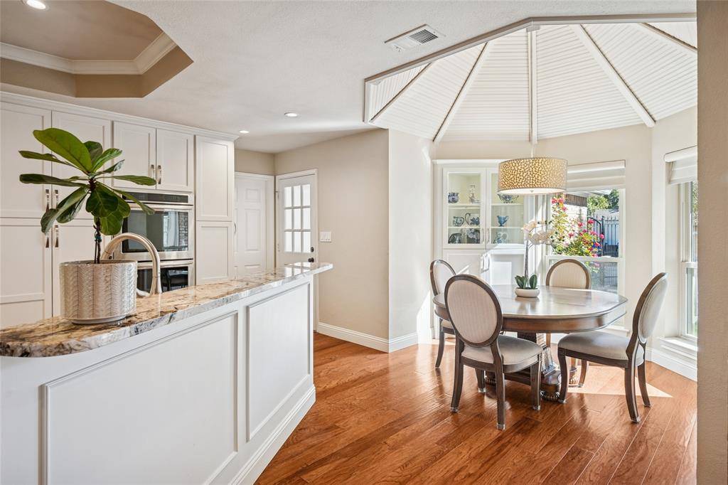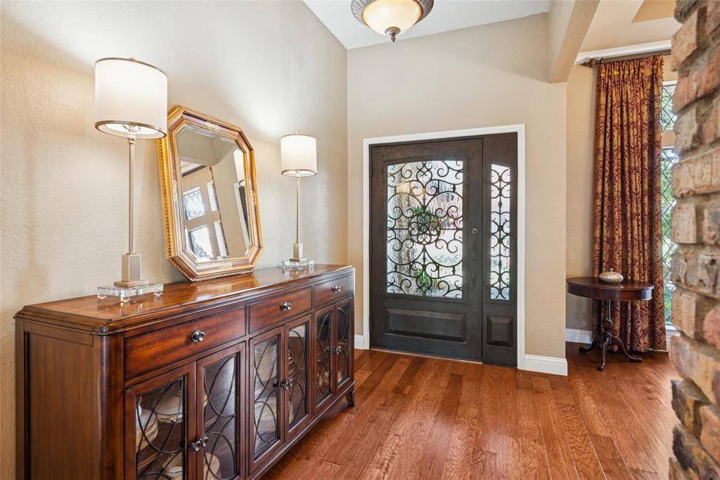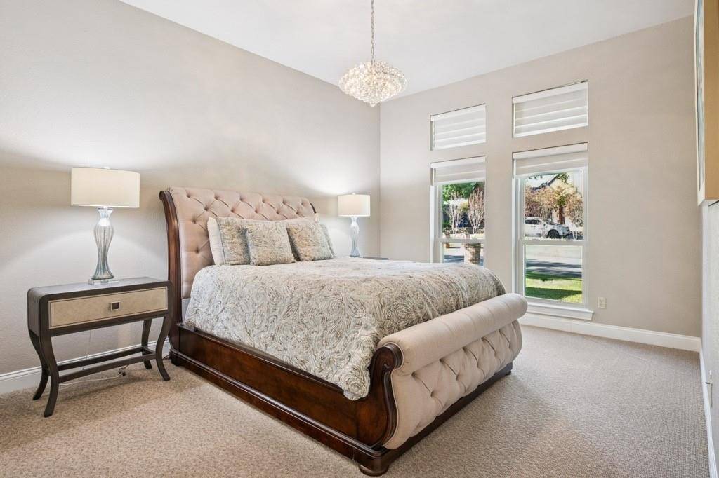 Beautifully updated custom 4-bedroom home, featuring Old Chicago Brick, new wood flooring, & located in the heart of Colleyville. Just minutes from major freeways, DFW Airport, Shopping & Entertainment, makes the location unbeatable! This spacious residence offers 2 full baths, 2 half baths, & multiple living areas—perfect for family living. Offering 2 inviting living spaces, one featuring a wood ceiling, a half bath & wet bar complete with a hammered copper sink, glass-front cabinets, & wine rack. This versatile space opens to the covered patio & pool, perfect for entertaining. The primary suite offers high ceilings with a chandelier, a spacious sitting area, & a bay window with custom shades. The ensuite bath features beautiful custom cabinetry, jetted tub, separate shower, & large customized walk-in closet. Three additional bedrooms are split from the primary bedroom. One with high ceilings, a chandelier, & walk-in closet, & one with a walk-in closet & charming window seat. A recently updated full bath separates 2 bedrooms from the 4th which can serve as a dedicated office & includes hardwood flooring, high ceilings, ceiling fan, built-in shelving & desk. Enjoy dining in the elegant formal dining room with tray ceiling, crown molding, and chandelier. The breakfast nook features a custom octagon ceiling, chandelier, & lighted built-in China cabinet, overlooking the backyard. The updated kitchen includes wood floors, granite countertops, glass-front cabinets, under-cabinet lighting, microwave drawer, electric cooktop, double ovens with warming drawer, & pantry with pull-out shelving. A lighted utility closet is a bonus! Step outside to a private backyard retreat with a covered patio, in-ground pool with heated spa, cedar fencing, shed for storage & a meticulously landscaped yard. Easy access to Sparger Park with playground, pavilion & walking trails. Resident can apply during open enrollment to GCISD. This home won't last long, so call & request a showing today!