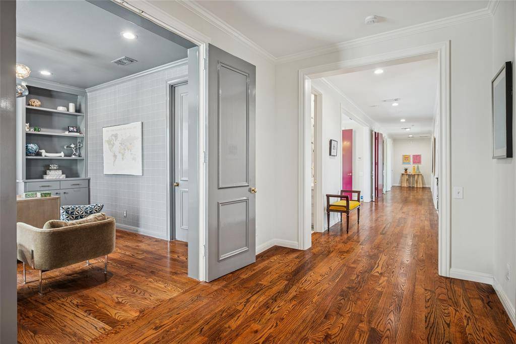 Gracefully positioned along Northaven Trail on a tree-lined cut-de-sac, this beautifully updated 3 bedroom, 4. bath patio home offers refined living in one of Dallas' most established and desirable neighborhoods. Mature live oaks frame the property, creating both privacy and presence. Designed for effortless entertaining and everyday elegance, the home centers around a stunning courtyard complete with pergola and a dramatic wood-burning fireplace-an inviting outdoor living room that extends the homes entertaining potential year round. A pool just beyond enhances the private, resort style atmosphere. Inside, generous living spaces are filled with natural light and anchored by a gas fireplace and custom built ins. The dining room enjoys courtyard views, creating a seamless indoor-outdoor ideal for hosting.The expansive primary suite serves as a true retreat, featuring dual baths and separate walk in closets-a rare and luxurious layout. The front bedroom is currently styled as a sophisticated private office, ideal for today's work from home lifestyle, while bonus room off primary offers flexibility for a fitness studio, nursery, or additional office. Refinished hardwood, a wet bar, abundant storage and a two car attached garage complete the home. A rare opportunity to enjoy lock and leave ease without sacrificing space, privacy or convenience in a premier Dallas location.