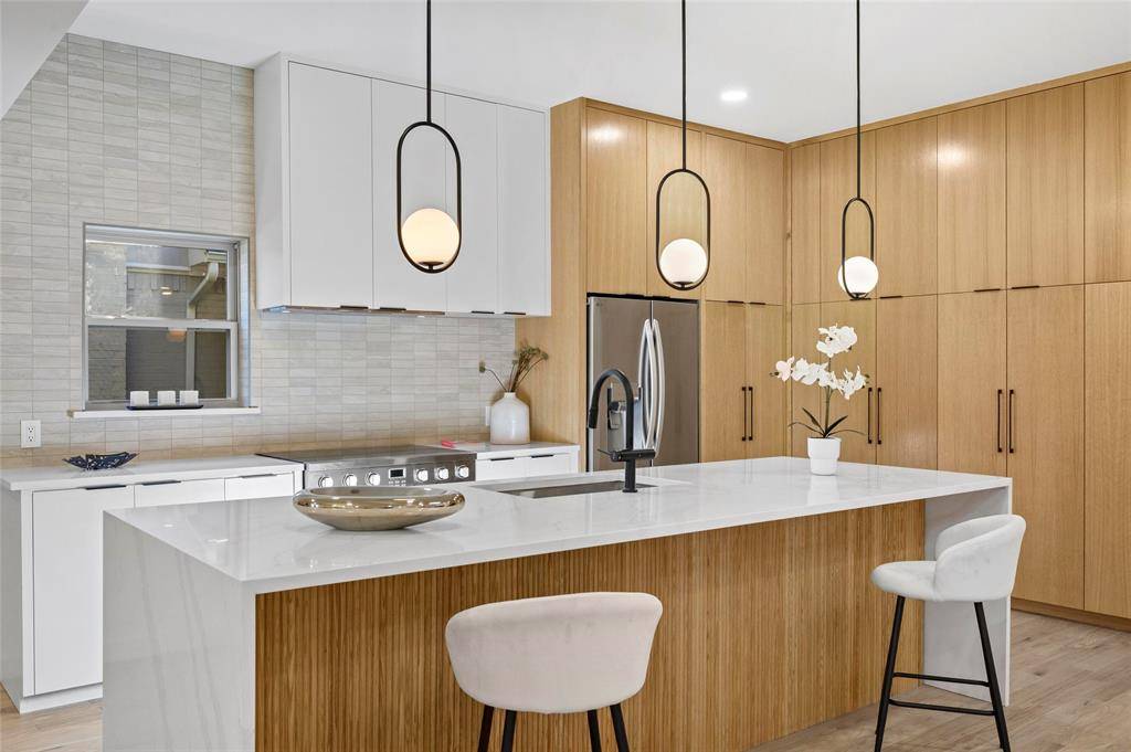 Enjoy oak hardwood floors across the home, Porcelanosa tile in designer spaces, and a show-stopping kitchen featuring custom white oak cabinetry and stainless steel appliances. The spacious primary suite offers a spa-inspired en suite bath with dual sinks and bespoke tile work, while a cedar closet adds a rare, luxe touch.