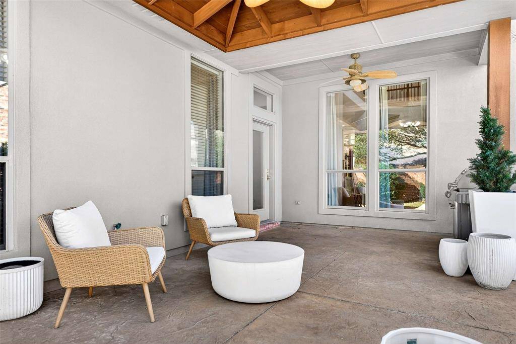 Set on a beautiful cul-de-sac street in the Gentle Creek Estates golf course community, this wonderfully maintained home offers refined finishes and comfortable living in a prime Prosper location. Zoned to top-rated Prosper ISD and Walnut Grove High School, this home is perfectly positioned for families who value great schools and a connected community. From the moment you step inside, you will notice the timeless touches: custom shutters, wood floors throughout the main living areas, and updated lighting that gives the home a bright and modern feel. The kitchen features recently painted cabinetry, granite countertops, a gas cooktop, double ovens, and a center island that is perfect for everyday living and entertaining. The formal dining room offers flexibility to serve as a study or home office. The light-filled living room impresses with a vaulted ceiling, custom built-ins, and a cozy gas log fireplace, creating a warm and welcoming gathering space. The oversized primary suite is a true retreat, complete with an en suite bath featuring dual sinks, painted cabinetry, updated lighting and plumbing fixtures, a jetted tub, separate shower, and a walk-in closet. Additional highlights on the main level include a stylish powder bath, a utility room with cabinetry, and an extra storage closet under the stairs. Upstairs, you will find a versatile loft area, two secondary bedrooms connected by a Jack and Jill bath, plus a third room with a closet that can easily function as a fourth bedroom or home office. Step outside to enjoy the extended covered patio with cedar accents, overlooking a landscaped backyard that's ready for play, pets, or relaxed evenings outdoors. The two-car garage offers additional storage area. All of this is set in a sought-after golf course community with a pool and playground, just minutes from Prosper's top schools, parks, shopping, dining, and everyday amenities. This is the kind of home where buyers put down roots and stay for a while.