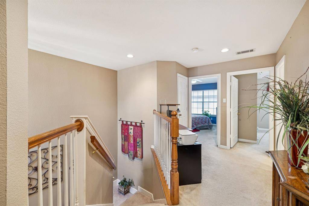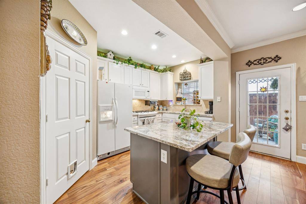Move in Ready! Well-maintained and updated 3 bedroom, 2.5 bath condo located in North Dallas within the exceptional Plano ISD. As you enter the home, you pass a spacious dining area that flows seamlessly into the living room and kitchen, creating an open-concept layout. The dining space offers flexibility for traditional use or could easily serve as a home office or additional sitting area. On cold winter days the living room is warmed by a cozy fireplace with gas logs. The kitchen includes gorgeous granite countertops, porcelain sink, touchless faucet, gas cooktop, an island and plenty of cabinet space. Step outside to your own charming private patio with a hanging swing — the perfect spot for morning coffee, a small herb garden, or simply swinging. The primary suite features a large walk-in closet and ensuite bath. Two additional bedrooms offer flexibility for guests, home office, or family use. As you leave your two car garage you have quick access to Highway 190 and the Dallas North Tollway, making commuting, shopping, and dining easily accessible. This is low-maintenance living wrapped in warmth, style, and everyday elegance — a place where life feels simplified. The refrigerator, washer, and dryer will remain with the home.